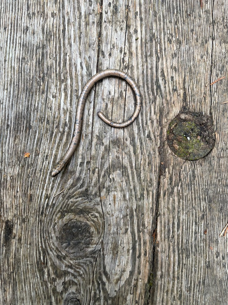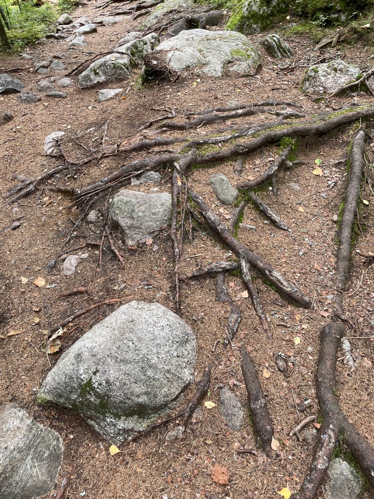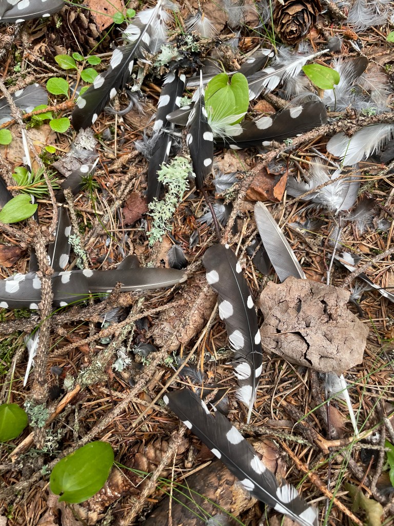 Reitti piti sisällään niin pitkospuita kuin kallio- ja rantamaisemia. Pitkospuilla luikerteli vastaan hohtava vaskitsa ja metsäisellä osuudella törmäsin kauniisiin sulkiin, jonka kantaja oli mahdollisesti joutunut hyökkäyksen kohteeksi. Reitin lopussa kävellään pieni matka hiekkatietä, jonka vieressä oli metsäkone työssään. Kaadettu metsä oli melkoinen kontrasti vasta käveltyyn luontopolkuun ja herätti paljon ajatuksia.