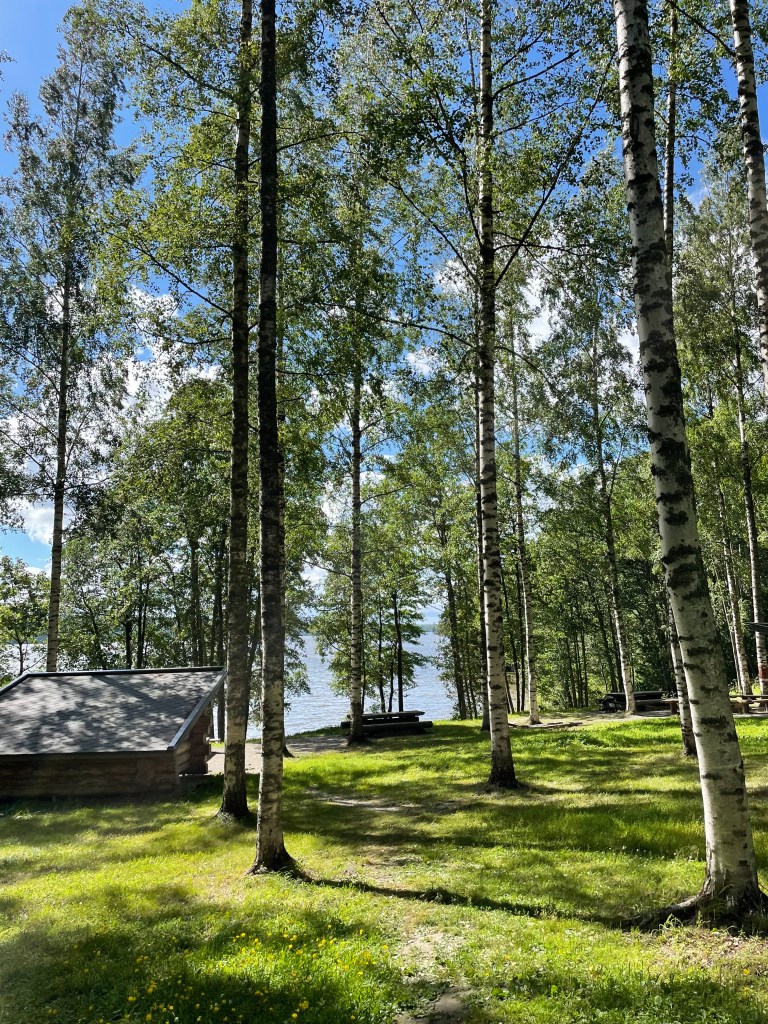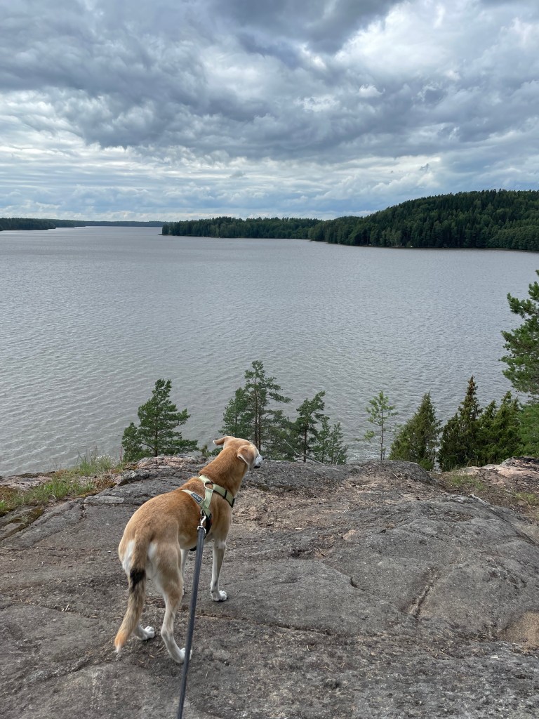 Tämä paikka on varsinainen aarre. Jo pelkkä ajoreitti paikkaan on viehättävän maalaismainen. Kesällä 2022 lähdin ilman mitään ennakko-odotuksia koiran kanssa kiertelemään paikkaa ja vastaan tuli niin hiekkarantoja, korkeuseroja, mukavia metsäpolkuja, näköalapaikkoja kuin paljon vadelmia ja mustikoitakin. Reitit olivat mielestäni alkuun hieman sekavat, mutta kun niitä pariin kertaan kulki edestakaisin, alkoivat ne vähitellen selkiytyä. Kävelin ensin alas kohti länsilaitaa ja yhtäkkiä vastassa oli nurmikkoalue, pari laavua ja hiekkaranta. Eikä ketään missään. Olin aivan äimänä ja mietin, että tämä olisi upea telttailupaikka. Rannalla evästä syötyäni lähdin kiipeämään Laukkakalliolle ja sekin maisema tupsahti kaikessa komeudessaan yhtäkkiä eteeni. Kallioilla oli pakko hetki istuskella ja nauttia näkymistä. Sen jälkeen kiertelin alueen keskiosissa, kurkkasin hiidenkirnun ja sitten lähdin valloittamaan itälaitaa.