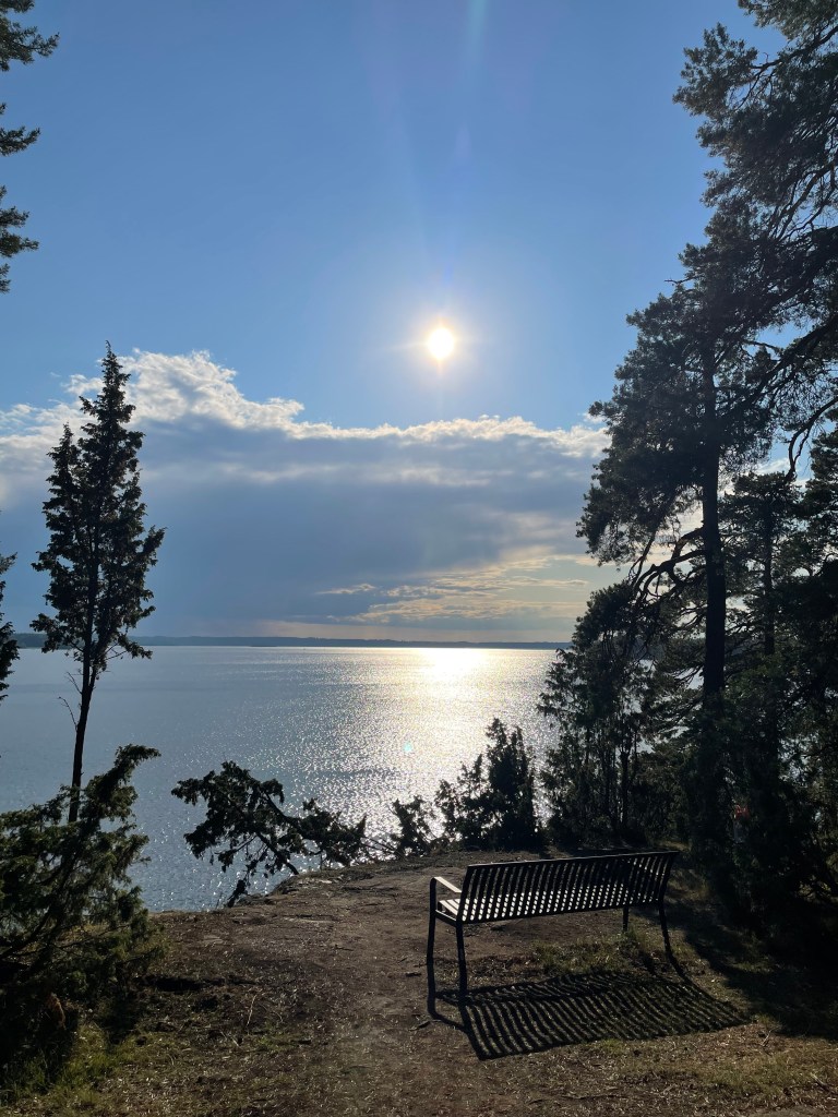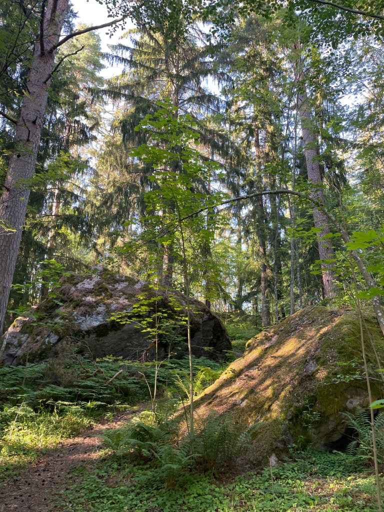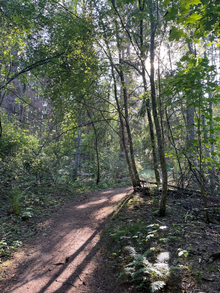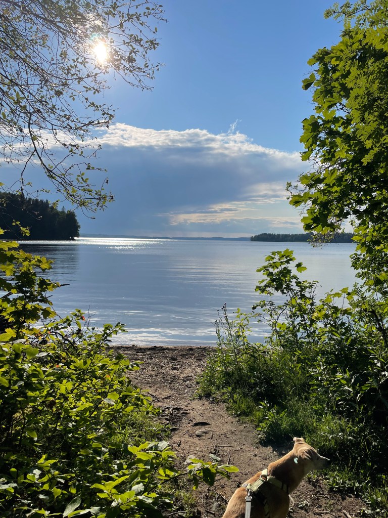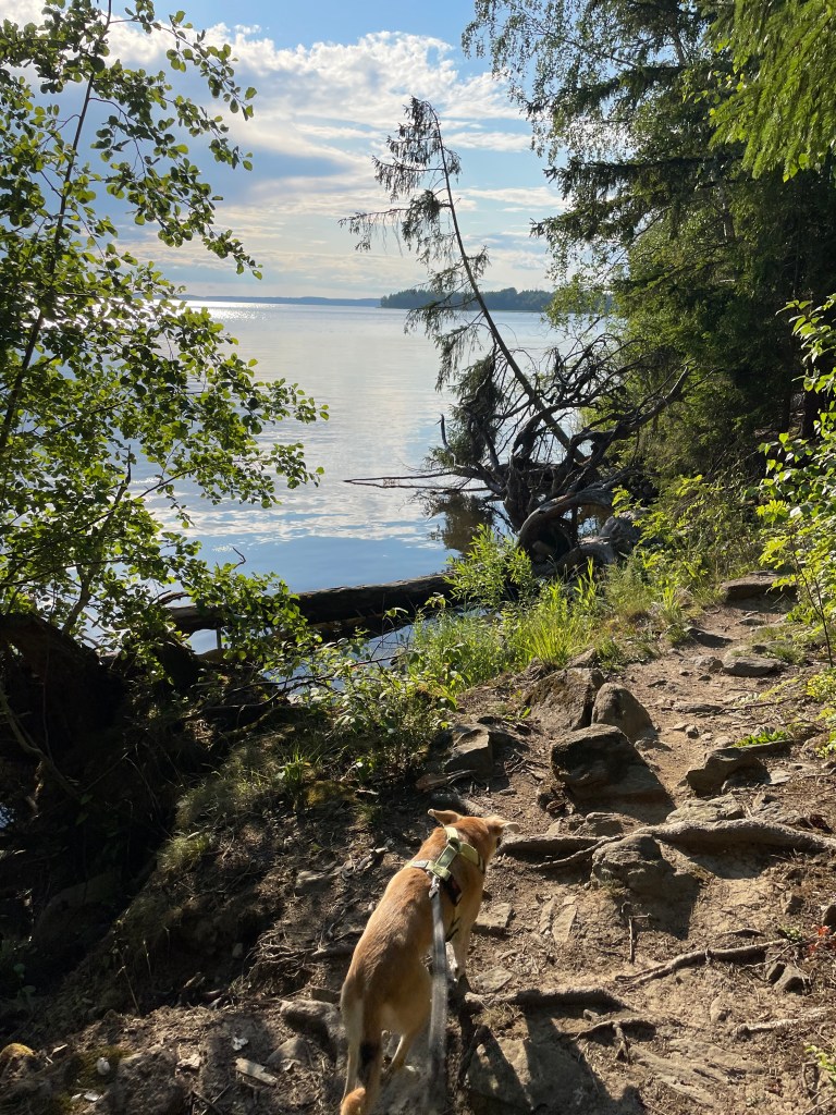 Kauniina kesäiltana 2023 kävin täällä kävelemässä koiran kanssa. Oli arkipäivä, eikä muita kulkijoita ollut. Auton jätin läheisen liikuntakeskuksen pihaan. Alkuun polkuja risteili sinne tänne ja en ollut ihan varma, mikä poluista on oikea. Löysin kuitenkin ensimmäisen kyltin, joka esitteli paikkaa ja siitä oli helpompi jatkaa. Jonkun matkaa käveltyäni tulin hiekkarannalle ja jäin pitkäksi aikaa vain kahlailemaan mukavan lämpöiseen rantaveteen. Jatkoin matkaa kivikkoista rantapolkua pitkin ja polku nousi kallioille, mistä oli huikeat näkymät järvelle. Jäin kallioille istuskelemaan pitkäksi aikaa.