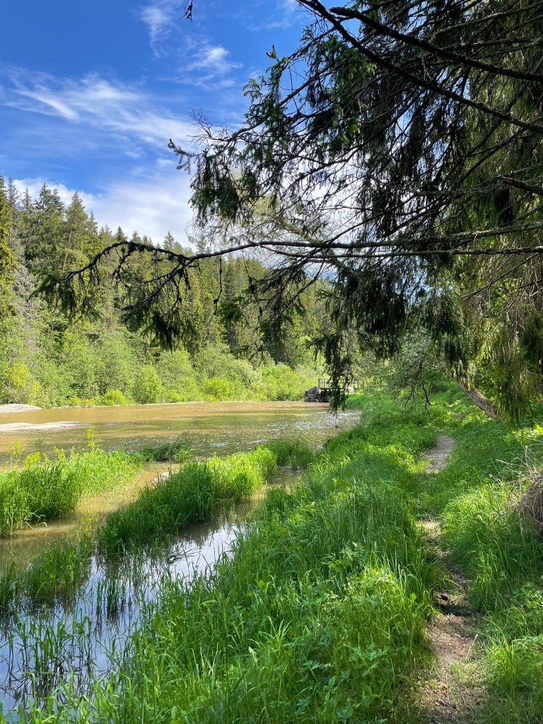 Yläjuoksun polulle mentäessä ylitetään tie ja polku jatkuu kauniiseen metsään. Täältä löytyy katselulava, jossa voi ihailla veden voimaa. Seurasin rantaa ja polkua pidemmälle, mutta polku tyrehtyi ja palasin takaisin autolle.