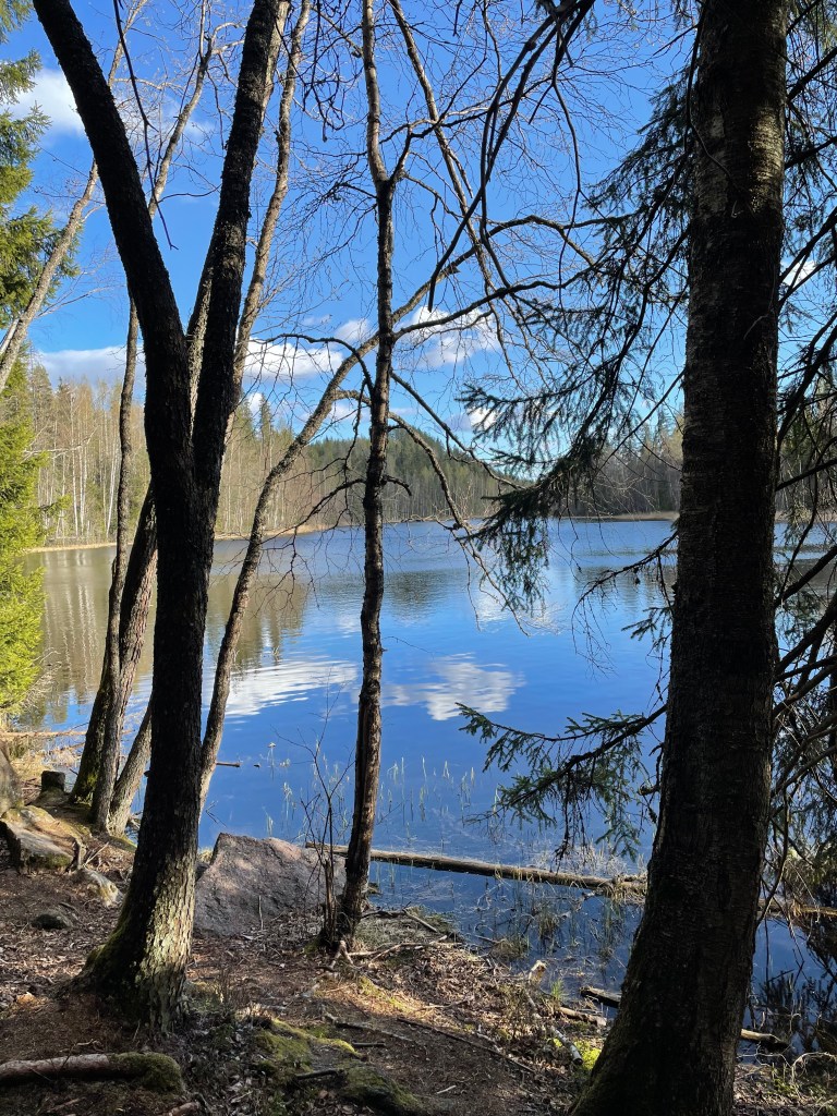 Tutkin Etelä-Suomen retkeilyoppaasta paikan reittejä ja lähdin ensin lammen rannasta oikealle ja kiipesin jyrkän kallion päälle. Sieltä polku jatkui metsäautotielle ja kohti Lautlammen kotaa. Reitti on edestakainen, eikä mielestäni mikään erityinen nähtävyys.