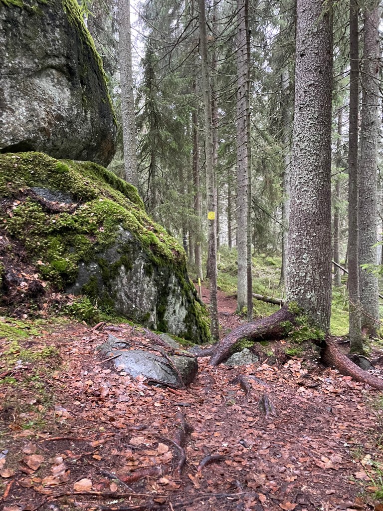 Etenemiseni oli jotakin kävelyn ja juoksun välimaastoa. Pysähdyin nappailemaan kuvia ja nautin raikkaasta syyssäästä ja rauhallisesta tunnelmasta. Matkalla kohti Piilolampea oli todella hienoja ja jyrkkiä kallioita, joiden kohdalla mietin, että reitti on niin hieno, että tätä esittelisi mielellään muillekin.