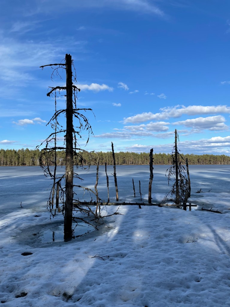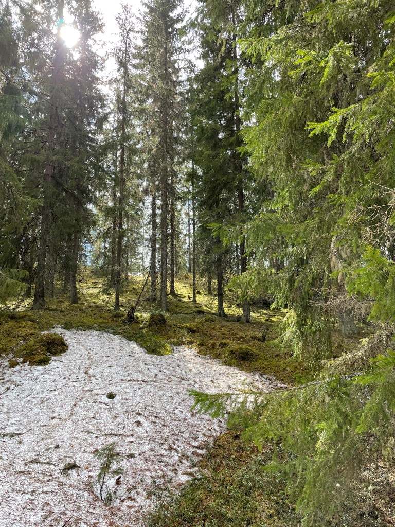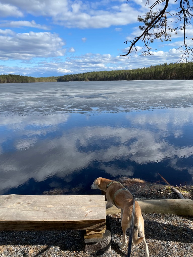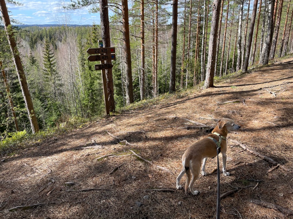 Kävin tutustumassa Komion polkuihin koirien kanssa keväällä 2022. Lunta oli vielä osittain maassa ja paikoin oli aika märkää. Kiersimme Komion alueen kaikki kolme reittiä.