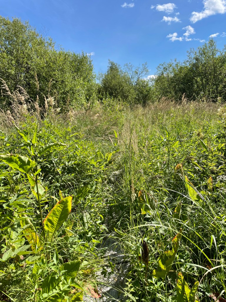 Polku oli välillä niin kasvuston peitossa, että vastaantulijan väistäminen olisi ollut vaikeaa, mikäli haluaisi pitää jalkineet kuivana. Punkkikammoisille tämä kohde saattaisi olla painajainen, sillä pusikoiden läpi kulkiessa saat kokovartalokylvyn kasveista, jotka ylettyvät kasvojesi korkeudelle ja ylikin. Erilaisia kasveja oli tietenkin tällaisessa kosteassa ympäristössä todella paljon. Voin kuvitella, mikä paratiisi tämä on tietyille lintulajeille sekä erilaisille ötököille. Keväällä äänimaailma on varmastikin huikeimmillaan lintujen laulaessa, sammakoiden kurnuttaessa ja erilaisten hyönteisten surratessa ympäriinsä. Liikenteen melua ei valitettavasti tällaisessa kohteessa pääse karkuun.