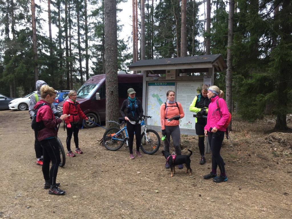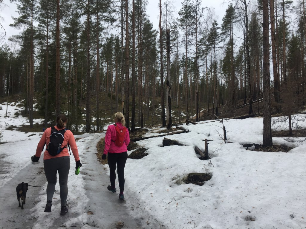 2019 keväällä lähdimme juoksuporukan ja parin pyöräilijän kanssa valloittamaan Poronpolkua. Matkatavoitteena taisi olla koko reitti, jonka pituus on 30 kilometriä, mutta oman polvikivun takia ehdotin lyhyempää reittiä ja matkaksi taisi tulla yhteensä noin 24 kilometriä.