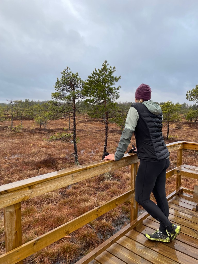 Yksi mieleenjäänyt kokemus oli syysmyrskyn jälkimaininkien aikaan. Lähdin juoksulenkille kiertämään Suotaivalta ja oli mahtava kokemus juoksennella tyhjiä pitkospuita yksinään tuulen pieksäessä suota ja minua. Reitille oli kaatunut useampi puu ja niiden ylittäminen tai kiertäminen toi lenkkiin vielä enemmän seikkailun tunnetta. Samalla reissulla yllätin kolme maakotkaa
