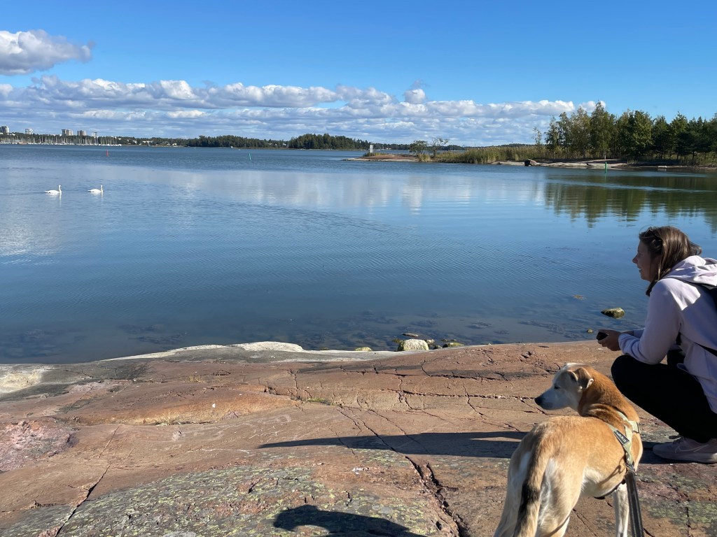 Lähdimme sukulaistytön kanssa syyskuun alussa 2022 tutustumaan paikkaan. Autolle löytyi selkeä parkkipaikka ja polku lähti seurailemaan rantaviivaa lehdon kautta. Jonkun matkan päästä saavuimme rantakalliolle, jossa vietimme pitkän tovin tutkiessa ympäristöä. Paikasta löytyi hassuja karvaisia kiviä, jotka olivat veden alla olleita leväisiä kiviä. Reitin pohjoisimmassa päässä sijaitsi lintutorni, johon polku teki poikkeaman. Oli ihana ilma, vehreää, aurinkoista ja kaikki niin hyvin. Lintutorni oli kaislikon ympäröimä ja kävimme kurkkaamassa torniin, mutta emme nähneet mitään katsetta kiinnittävää.