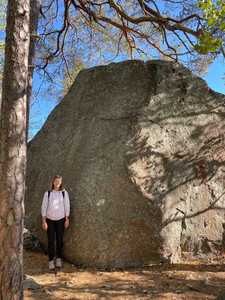 Kuljeskelimme pitkän tauon jälkeen pitkin kallioita maisemista nautiskellen ja lähdimme suuntaamaan takaisin luontopolulle. Asutusalueen reunalla kävimme katsomassa valtavaa siirtolohkaretta (Hanikan siirtolohkare), joka on rauhoitettu luonnonmuistomerkkinä. Reitti oli tässää kohtaa kevyen liikenteen väylää ja tien ylityksen jälkeen pääsimme taas sukeltamaan metsään. Loppureitti kulki kallioilla ja poluilla. Hanikan luontopolku on 5 km pitkä ja poikkeama Kasavuorelle tuo reittiin jonkun verran lisää matkaa.