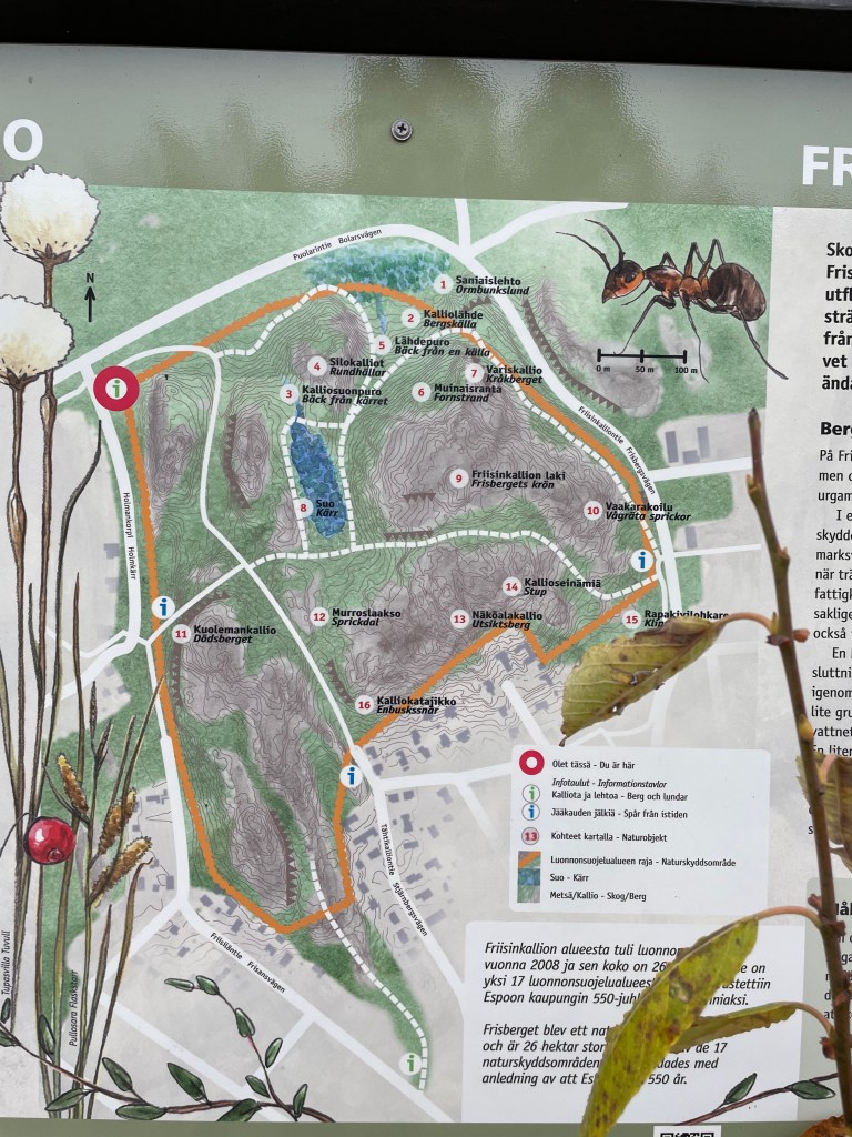 Friisinkallion luonnonsuojelualue on mielenkiintoinen ja yllättävän monipuolinen. Vaikka metsikössä kulkee varmasti kaikenlaista porukkaa, ei roskia kuitenkaan näkynyt häiritsevästi. Toki joitain hylättyjä tavaroita tuli vastaan ja yleisönosaston kirjoitusten mukaan huolta on herättänyt metelöinti ja luvattomat nuotiot.