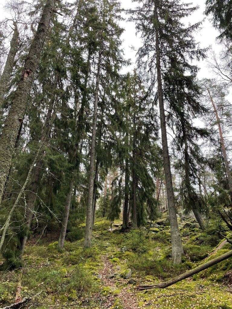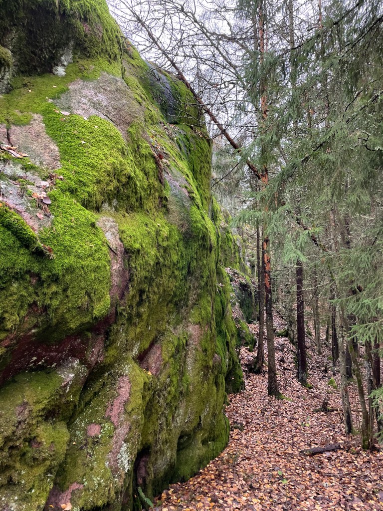 Lähdin käymään kohteessa syksyllä 2022. Olin aiemminkin käynyt täällä hakemassa jonkun geokätkön, mutta en silloin tutustunut sen enempää alueeseen. Auton jätin Holmankorpi -nimisen tien varteen ja kävelyteitä pitkin pääsin sukeltamaan metsään. Alkuosa oli ulkoilureittiä, joka leikkaakin läpi metsän yhdistäen asuinalueita. Ulkoilutie nousi ylämäkeen ja ensimmäisestä risteyksestä käännyin oikealle Kuolemankalliolle. En kiivennyt kallion päälle, vaan jäin ihastelemaan kallion alaosan sammalverhousta.