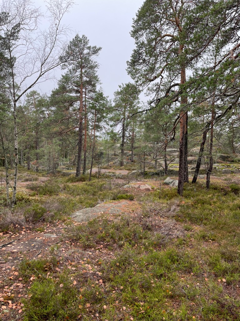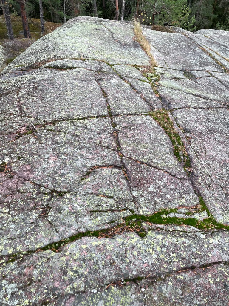 Kuolemankalliolta jatkoin kohti alueen keskiosaa ja päädyin polkuja pitkin suon laitaan, joka tuntui mukavan erämaiselta. Toisella puolen kallioiden päällä minua katseli valkohäntäkauris. Suon jälkeen koitti metsäalue, jossa ei ollut lainkaan aluskasvillisuutta. Polku kulki kallionyppylöiden välissä jättäen länsipuolelle silokalliot ja itäpuolelle muinaisrannan. Kulmauksesta suunta muuttui kohti kaakkoa ja lähdin kipuamaan kallioille. Kasvillisuus oli täällä huomattavasti karumpaa ja paljaat kallionlaet ovat joskus olleet meren ympäröiminä. Kallioissa oli mielenkiintoisia rakoja ja lohkareita, aivan kuin joku olisi käynyt veitsellä sitä leikkaamassa. Friisinkallion alueen graniitin rakoilu on mainittu yhdeksi kohteeksi Espoon luontoa esittelevässä kirjassa Kotinurkilta kallioille.