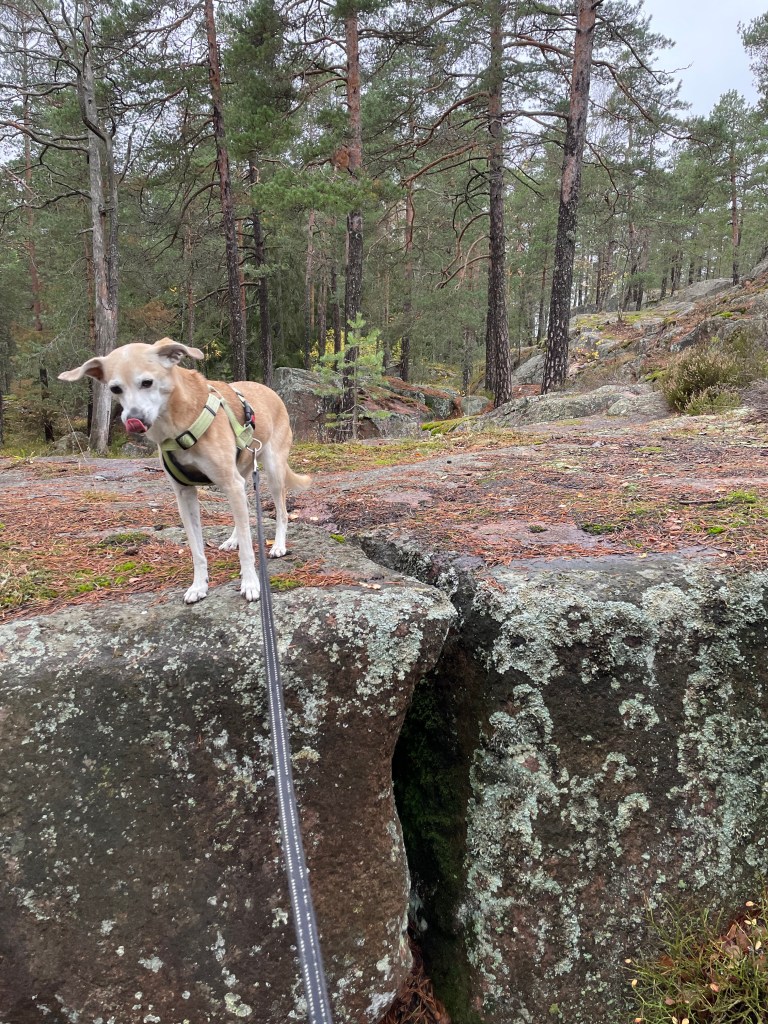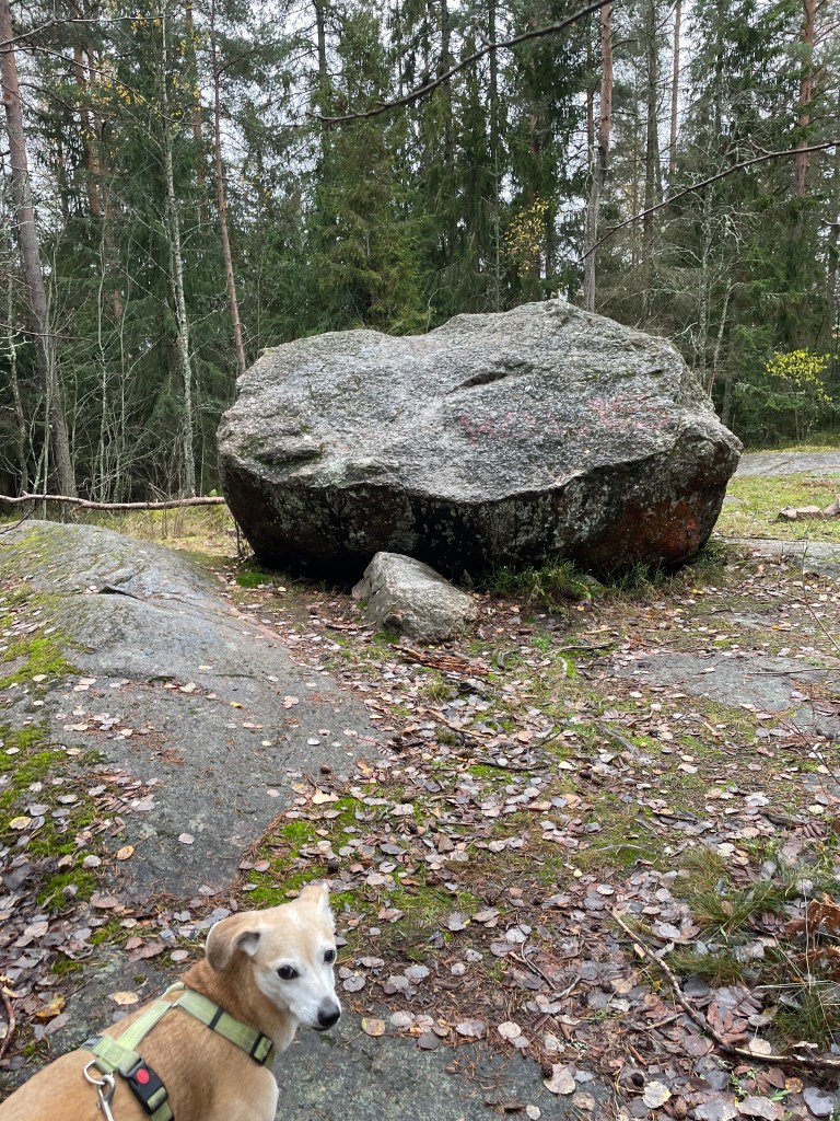 Vaikka urbaani ympäristö on aivan liki, oli suon laitamilla ja kallioiden päällä yllättävän rauhallista. En tiedä seurasiko sama kauris kulkuani, vai oliko alueella kaksi eri kaveria. Toinen havainto kauriista tuli muinaisrannan kohdalla, josta minua ja mukana ollutta koiraani tarkkailtiin tiiviisti ylhäältä päin. Ehkä kauris tai kauriit majailevat pääosin Keskuspuiston puolella, mutta tulevat välillä vierailemaan Friisinkalliossa.