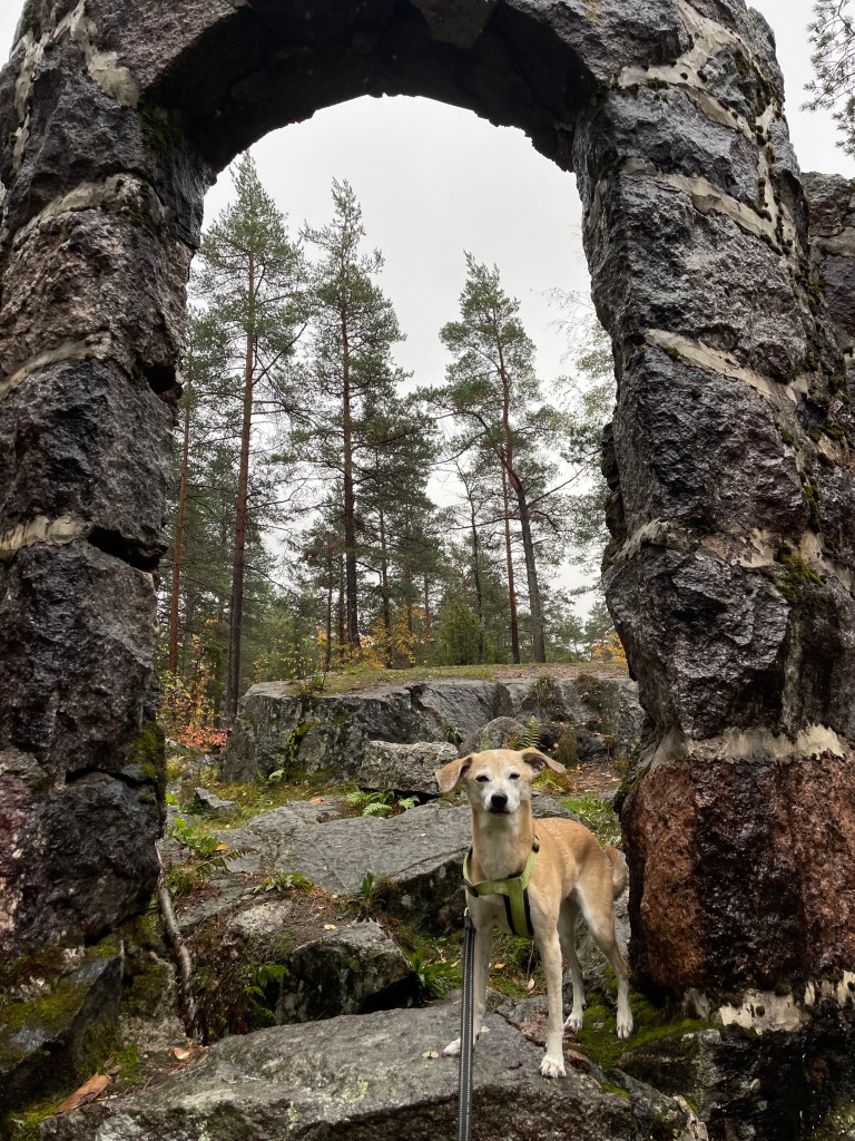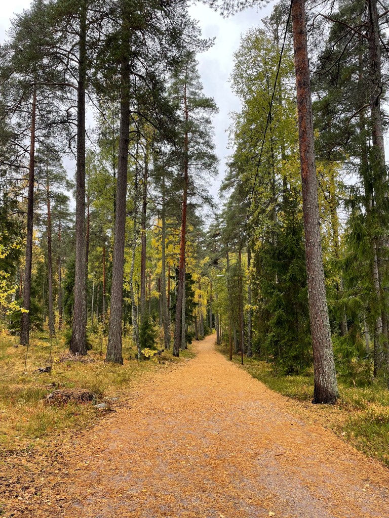 Syksyllä 2022 lähdin tutustumaan Kauniaisten versioon. Oli hieman epävakainen sää ja pohdin, lähdenkö tutustumaan uuteen retkikohteeseen vai keksinkö vapaapäivälle muuta ohjelmaa. Päätin kuitenkin lähteä ja kurvailin Espoon majapaikastani kohti Kauniaisten koulukeskuksen parkkipaikkaa. Ylitin tien ja lähdin koiran kanssa talsimaan syksyn keltaisten lehtien peittämää polkua sateen ripottelun kastellessa kevyesti vaatteet ja hiukset.