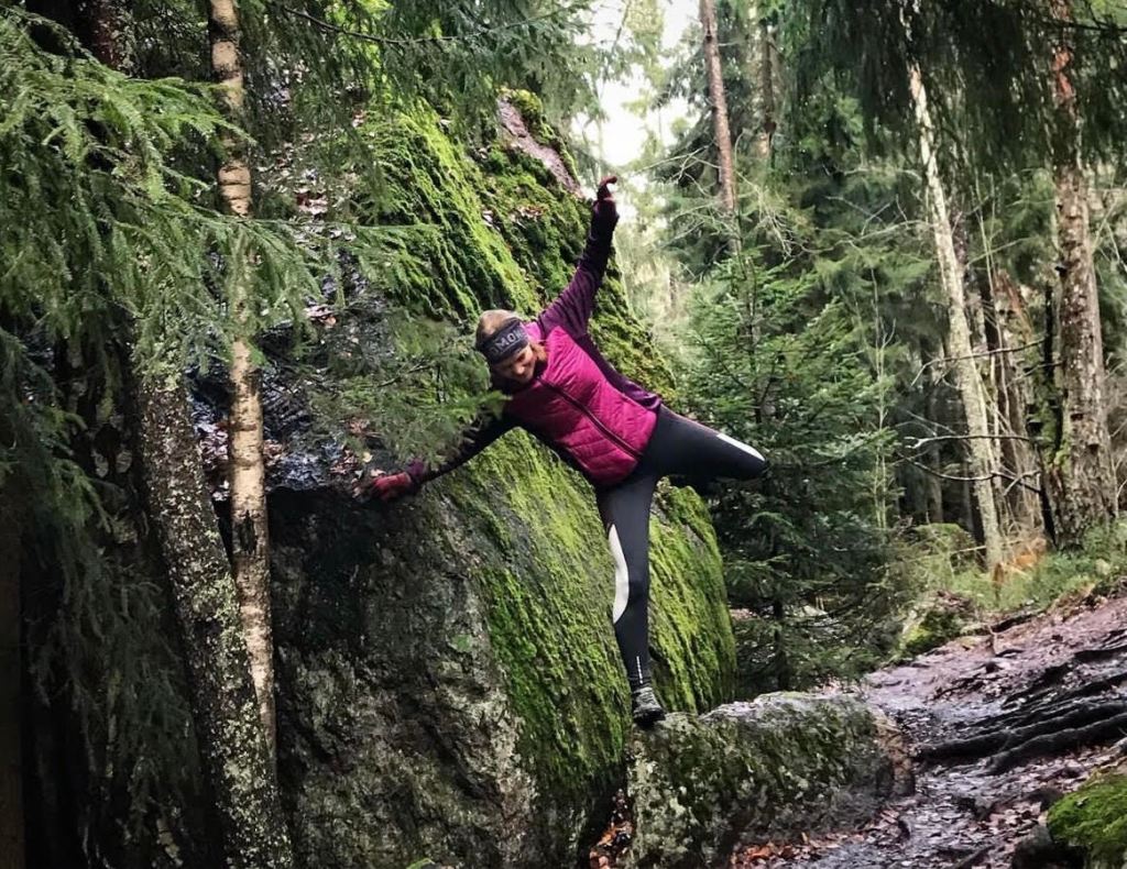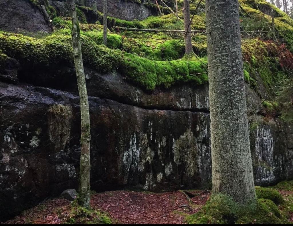 Kalkinpolttajan polku on tullut tutuksi juoksukuvioista. Olen juoksukaverini kanssa käynyt täällä lenkillä ja taisimme YLE:n Mennään metsään -kiertueellakin kulkea ainakin osittain samaa reittiä. Muistan, että YLE:n kierroksella juostiin Högbergetin kalliolla, jossa kaverini kompastui kalliossa kiinni olevaan metalliseen nuppiin ja meni täysin rähmälleen. Juoksukaverini kanssa kahdestaan juostessamme aloitimme reissun Kuusijärven parkkikselta ja siitä polkua pitkin Bisajärven kautta Kalkinpolttajan polulle. Korkeuseroja oli paljon ja niitä helpottamaan oli rakennettu useampaan paikkaan portaat. Sammalta on täällä valtavasti ja metsät ovat vihreitä kirjaimellisesti pohjia myöten ja se on mielestäni satumaisen kaunista. Reitin pituus on hieman alle viisi kilometriä, mutta Kuusijärveltä aloittaessa matkaa tulee yhteensä noin 14-15 km.