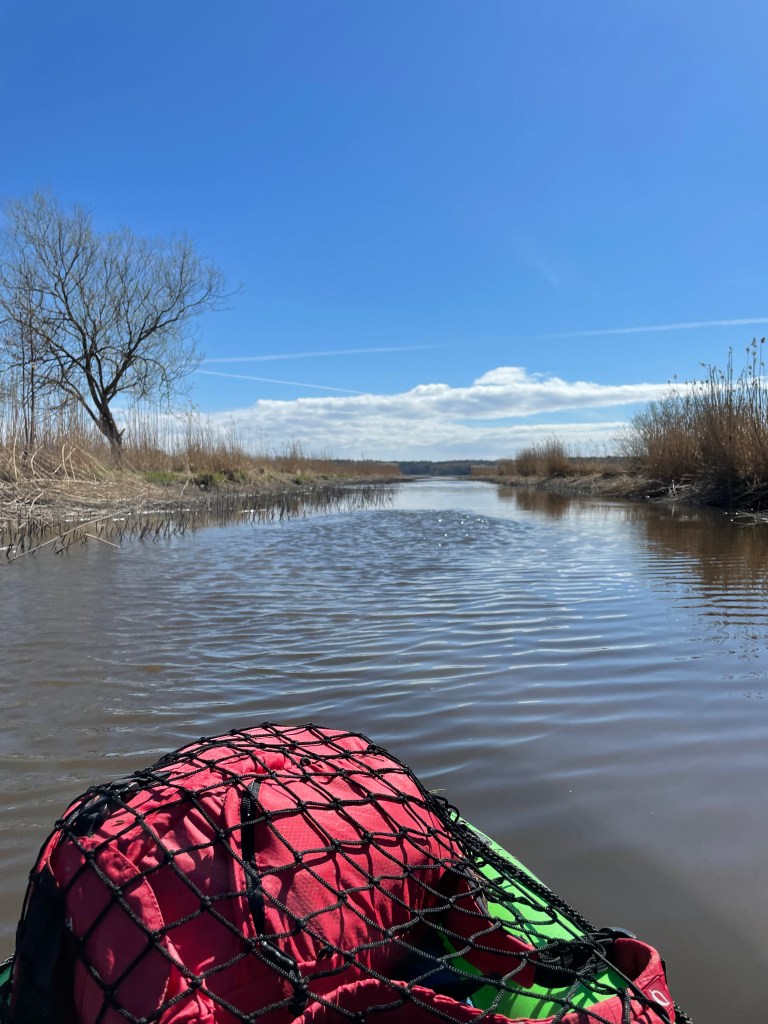 Helatorstai oli sovittu seikkailupäivä. Sitä ennen suunniteltiin, jännitettiin ja itse ainakin tavasin Karttaselainta ahkeraan tahtiin. Emme olleet ihan varmoja, mitä tuleman piti, mutta ainakin kaverini tiesi, että kyllä joella muitakin melojia oli näkynyt. Suunnitelma oli siis meloa Mankinjokea myötävirtaan Espoonlahtea kohti ja jatkaa sieltä Espoonjokea pitkin kohti Lasilaaksoa. Koska kulkuneuvomme on hieman kiikkerä, jännitin ehkä eniten sitä, että molskahdamme jokeen tai joudumme lahdella merihätään, jos sattuu olemaan tuulinen päivä. Ensin mietimme edestakaista reittiä, mutta koska kevät oli vielä käynnissä, ajattelimme vastavirran olevan liian kova pala. Oikeastaan ajankohta ja olosuhteet osoittautuivat loppupeleissä erittäin hyväksi, pahimmat kevättulvat olivat takana, mutta vettä oli kuitenkin riittävästi.