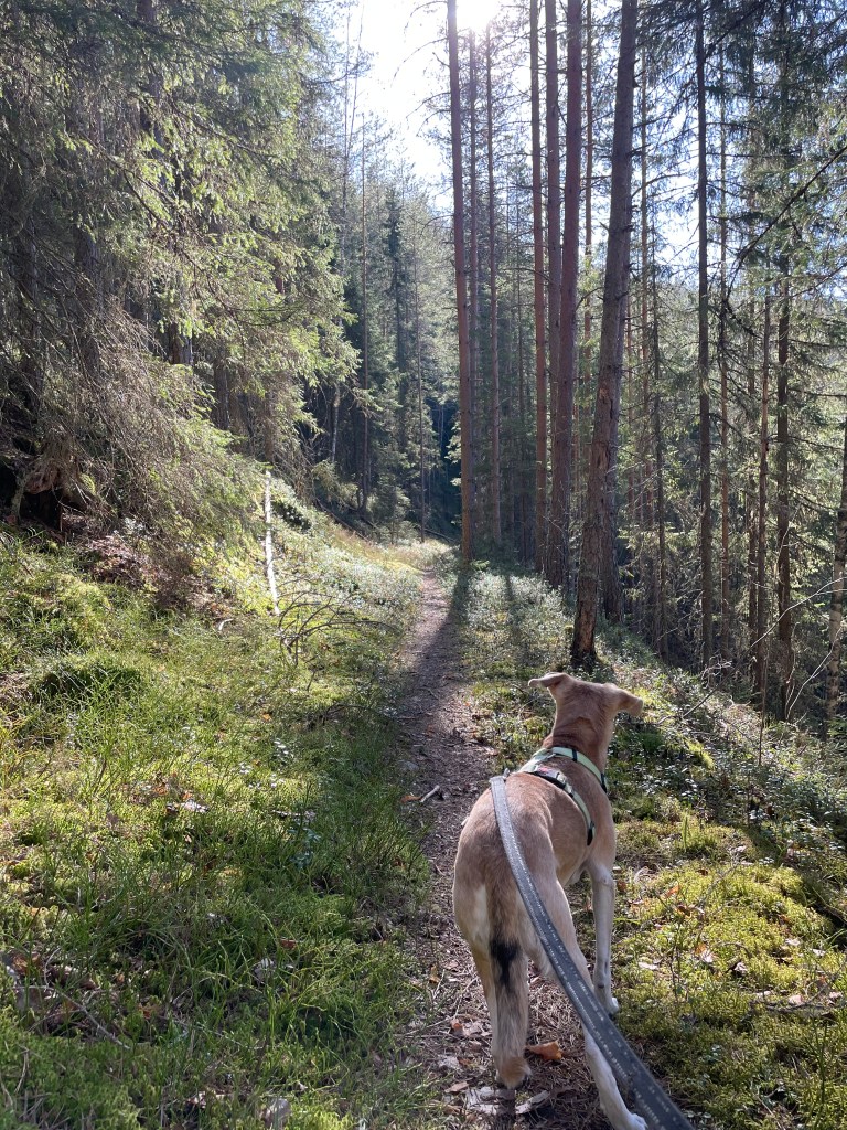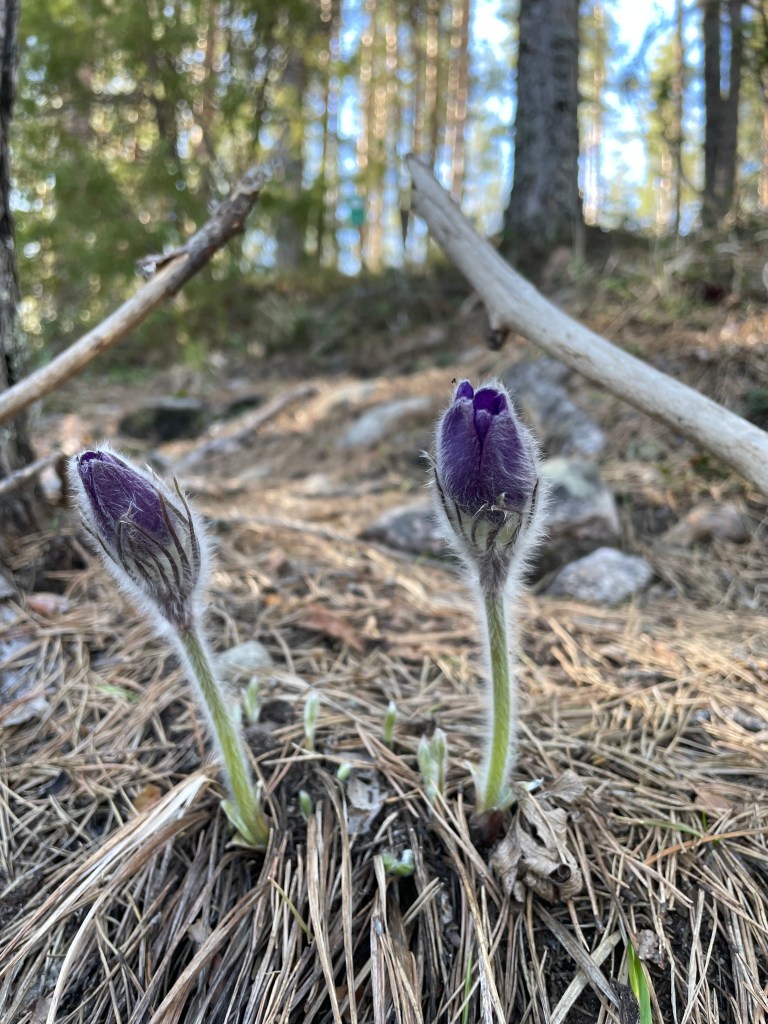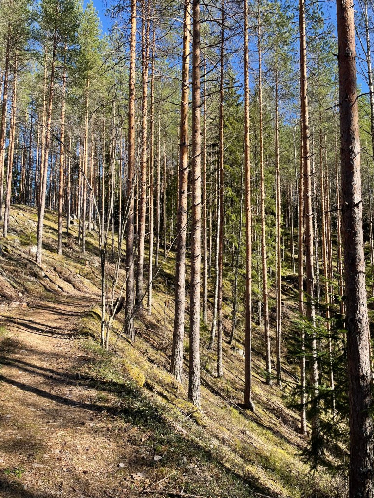 Kukkatuokion jälkeen päätin, että nyt on lähdettävä kotia kohti, mutta niin vaan taas polut veivät mennessään ja päädyin kiertelemään Kurjenlukko -nimistä suppaa, joka oli kyllä tosi hieno. Alhaalla oli syvä suppa, jossa oli vielä lunta ja toisella puolen polkua kohosi jyrkkä ylämäki kohti taivasta, melkein kuin olisi kävellyt metsäisen vuoren rinteellä. Polku hävisi yhtäkkiä, mutta oikaisin lähellä olevalle toiselle polulle ja lähdin marssimaan takaisin autolle.