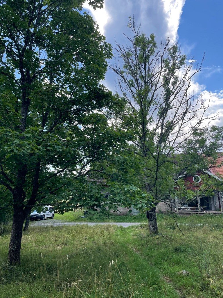 Matka kohti raunioita kulki viehättävien pikkuteiden kautta Kiskon kirkonkylän läpi vielä pienemmälle tielle, joka oli sopiva juuri yhdelle autolle. Jos paikkaan ei olisi ollut minkäänlaisia kylttejä, olisin epäillyt ajaa lähemmäksi. Autoille ei ollut osoitettu mitään parkkipaikkaa, joten hetken tuumailun jälkeen auto jätettiin tien vieressä olevan navetan pihaan, vastapäätä raunioille opastavaa kylttiä.