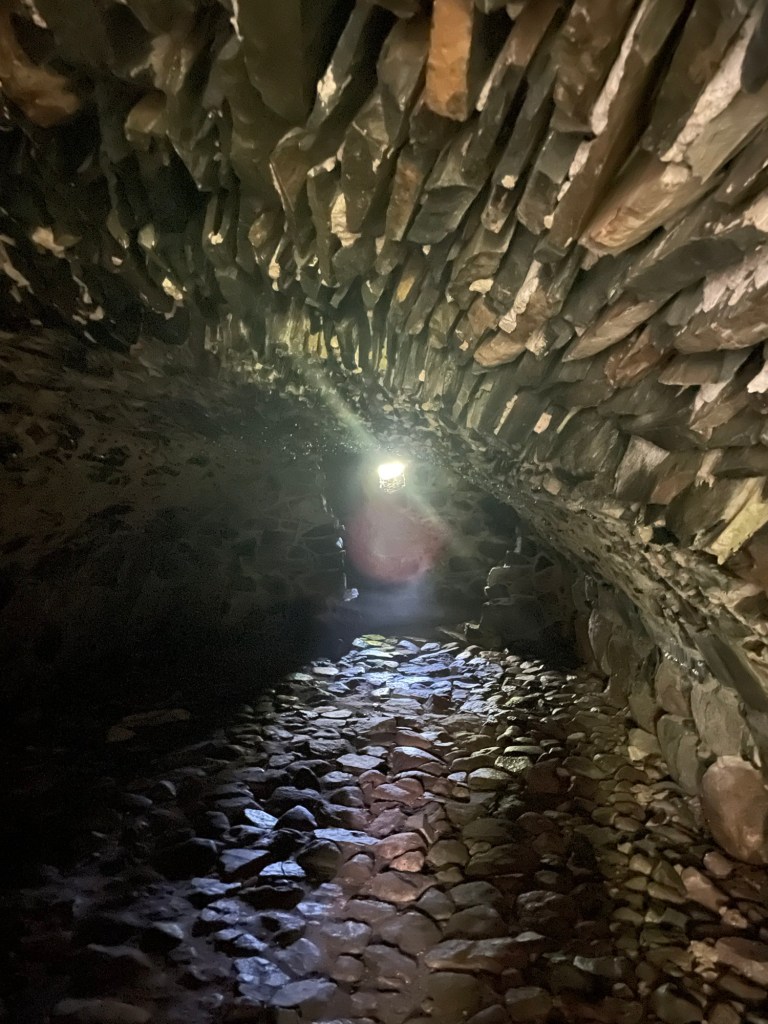 Alakerta koostui muutamista huoneista. Seinät olivat paksut ja niissä oli muutamia ikkuna-aukkoja. Holvikaaret olivat todella hienot ja ylipäätänsä koko paikka. Täällä voisi hyvin järjestää hääkuvauksia tai jotain muita kuvauksia. Katto oli paikoin jännää liuskekiveä ja mietin, että täällä on pakko asustaa lepakoita. Napsimme kuvia sekä videoita ja lähdimme vähitellen palaamaan autolle tyytyväisenä näkemästämme.