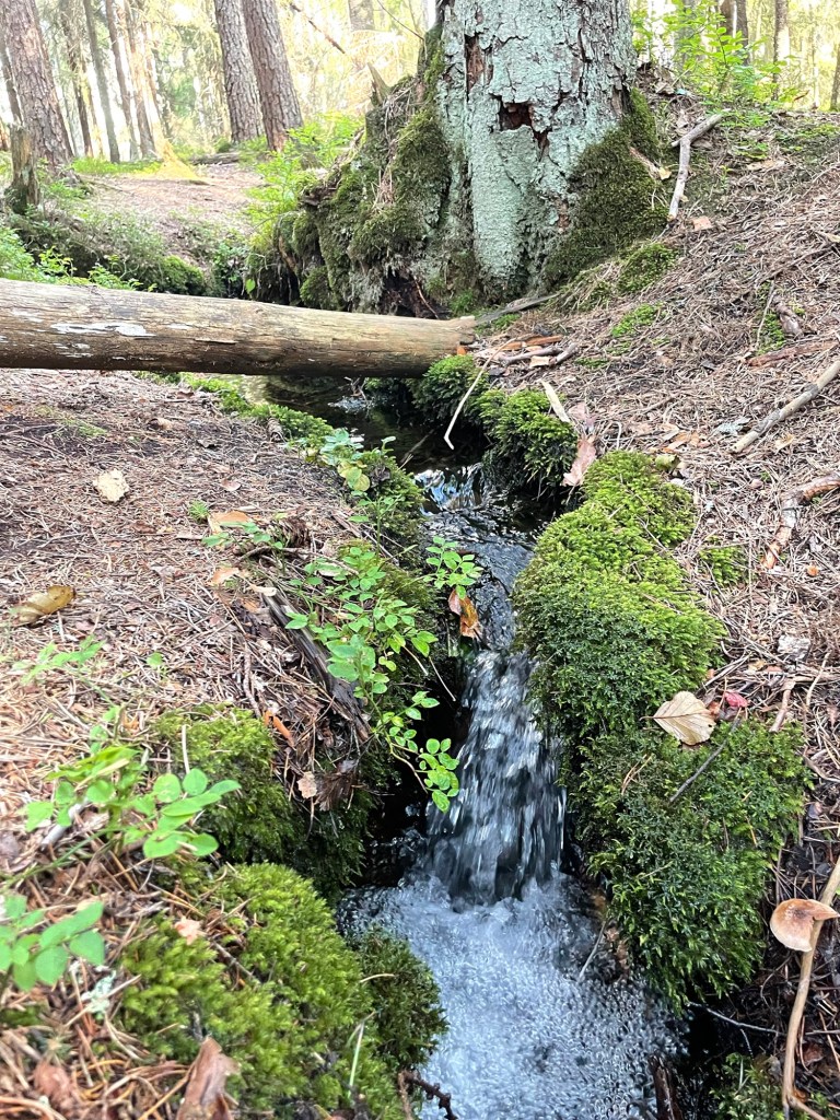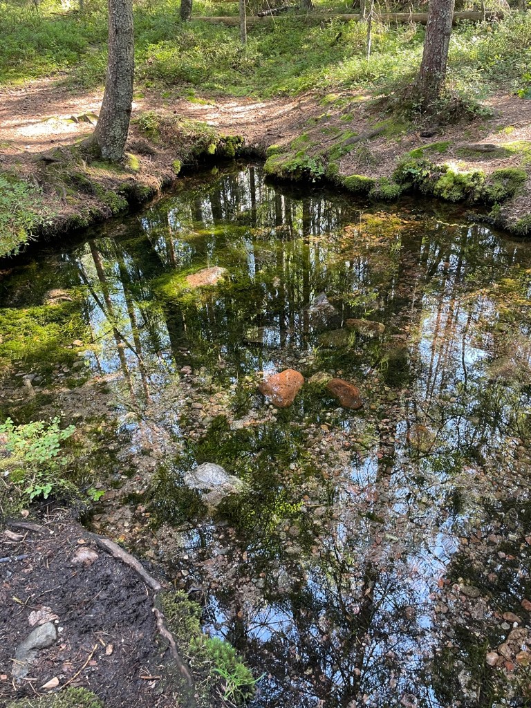 Parkkikselta lähteelle on noin 300 metrin matka selkeää polkua pitkin. Jotenkin, kun puhutaan lähteestä, tulee mieleen vehreä lehto tai Lapin solisevat purot. Kuivakka harjumaasto on tietenkin hiekkapohjan puolesta hyvin vettä suodattava maaperä, mutta silti yllätyksenä tuli, kuinka kuiva metsä lähdettä ympäröi. Vihreys ja vehreys purosta rajoittui vain muutamasta kymmenestä sentistä puoleen metriin. Tässä syynä varmasti myös ihmisen aiheuttama maaston kuluminen.