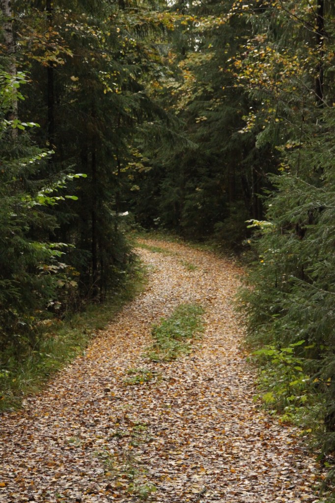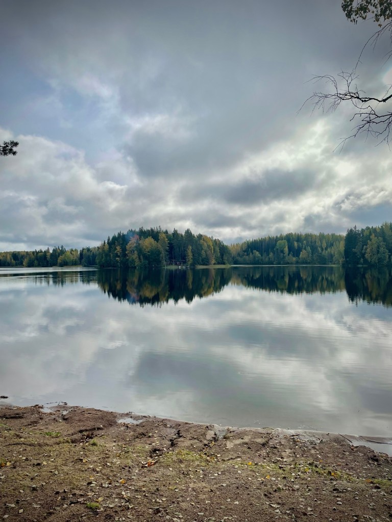 Evästauon jälkeen laskeuduimme Konianvuorelta alas ensin hiidenkirnulle ja siitä virallista polkua pitkin alas polulle. Kävelimme rannan mukaista polkua vielä jonkin matkaa eteenpäin seuraavaan tienristeykseen, ja koska siitä eteenpäin luvassa olisi ollut vain heinikkoista tietä, päätimme kääntyä takaisin. Ilman poikkeamia matka takaisin autolle menikin nopeasti ja sateen vyöryessä kohti, lähdimme jatkamaan juttujamme Karkkilan ABC:lle.