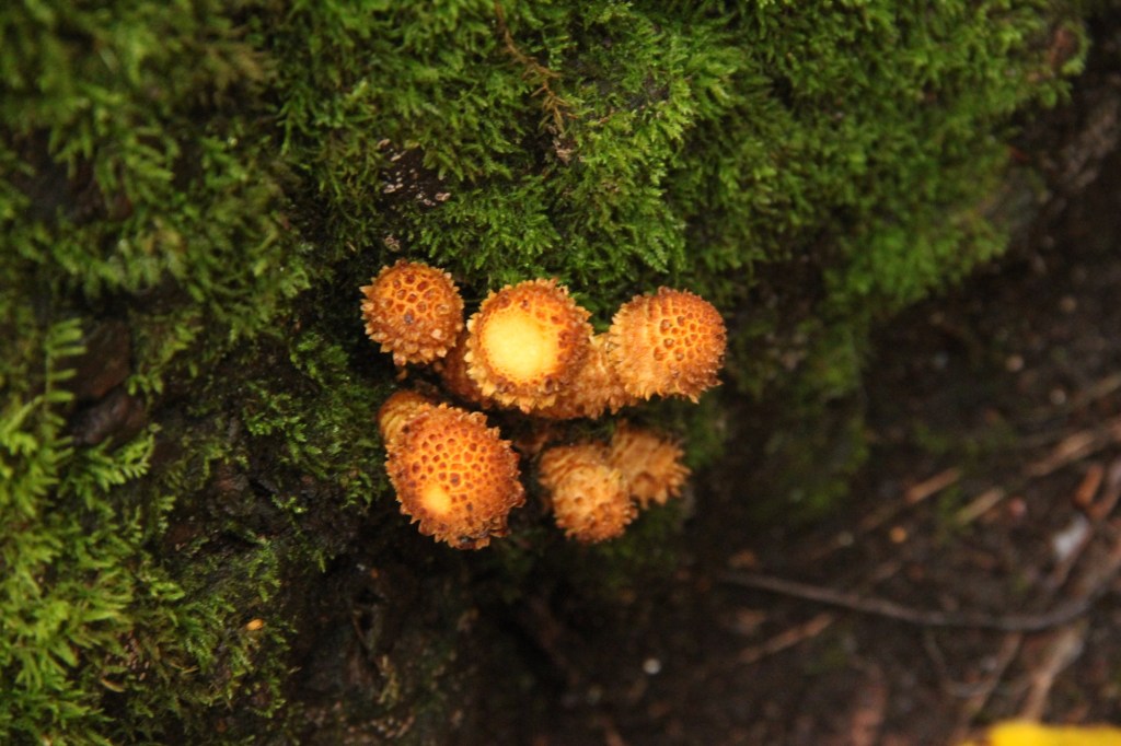 Lähdimme kävelemään samaa hiekkatietä takaisinpäin, jota pitkin olimme juuri körötelleet autoillamme perille. Tarkistin välillä Karttaselaimesta sijaintiamme, jotta löytäisimme oikean risteyksen mökkiteiden lomasta. Muutaman risteyksen jälkeen käännyimme vasemmalle seuraillen Moksijärven rannan tuntumassa kulkevaa tietä, jonka varrella oli useampia mökkejä. Vähitellen pieni lehtien täplittämä tie muuttui enemmän poluksi ja vastaan tuli luonnonsuojelualueen merkki. Kävelimme verkkaisesti viihtyisää polkua pitkin luontoa ihmetellen ja yritimme tunnistaa outoja sieniä, kuuntelimme harvoja lintuääniä sekä tutkimme kantoja ja koloja. Tavoitteena oli myös löytää hiidenkirnu ja Karttaselainta apuna käyttäen huomasin olevamme aika kohdalla. Polun oikealla puolella kohosikin Konianvuoren kalliot ja reitti ylöspäin näytti olevan melkoista ylämäkeä. Päättelin, että hiidenkirnulle täytyy mennä polku, mutta kohteen jäädessä jo kartan mukaan taakse, lähdimme painelemaan summamutikassa rinnettä ylöspäin. Nousu olikin aika haastava ja perille päästyämme näimme heti polun, joka olisi tuonut meidät perille suoraan kohteeseen.
