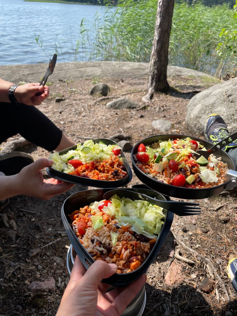 Herkkuruokia, luksuksena myös tällä reissulla mukana salaattia.