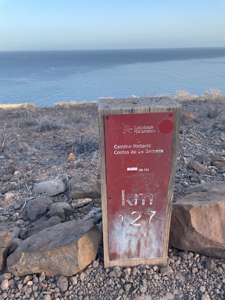 Kanariansaariin kuuluvan La Gomeran saaren ympäri kiertää pitkän matkan vaellusreitti nimeltään Camino Natural Costas de La Gomera ja kansainväliseltä nimeltään GR132. Periaatteessa ympyräreitin voi aloittaa mistä tahansa, mutta kilometritolpat alkavat idästä, saaren pääkaupungista San Sebastiánista. Reitti kulkee virallisesti vastapäivään, mutta moni on kulkenut sen myös myötäpäivään, koska eteläosan osuutta reitistä pidetään tylsempänä. Reittiin on ilmeisesti tullut myös joitakin vuosia sitten muutoksia, sillä ennakkoon tilaamassani paperikartassa reitissä oli suuriakin eroavaisuuksia.