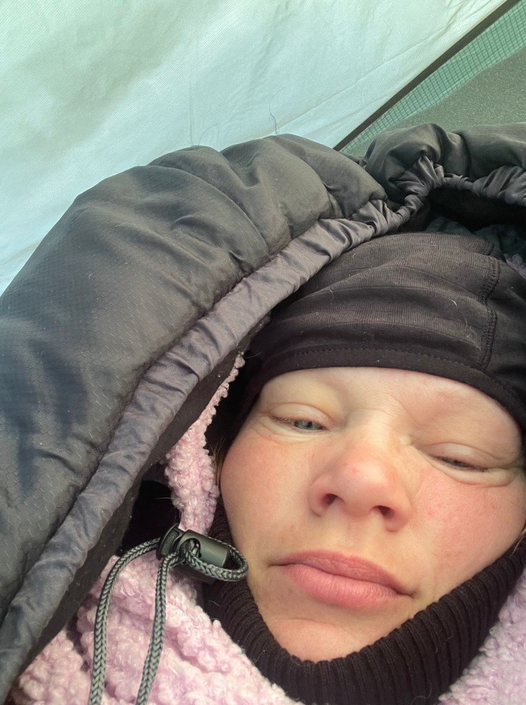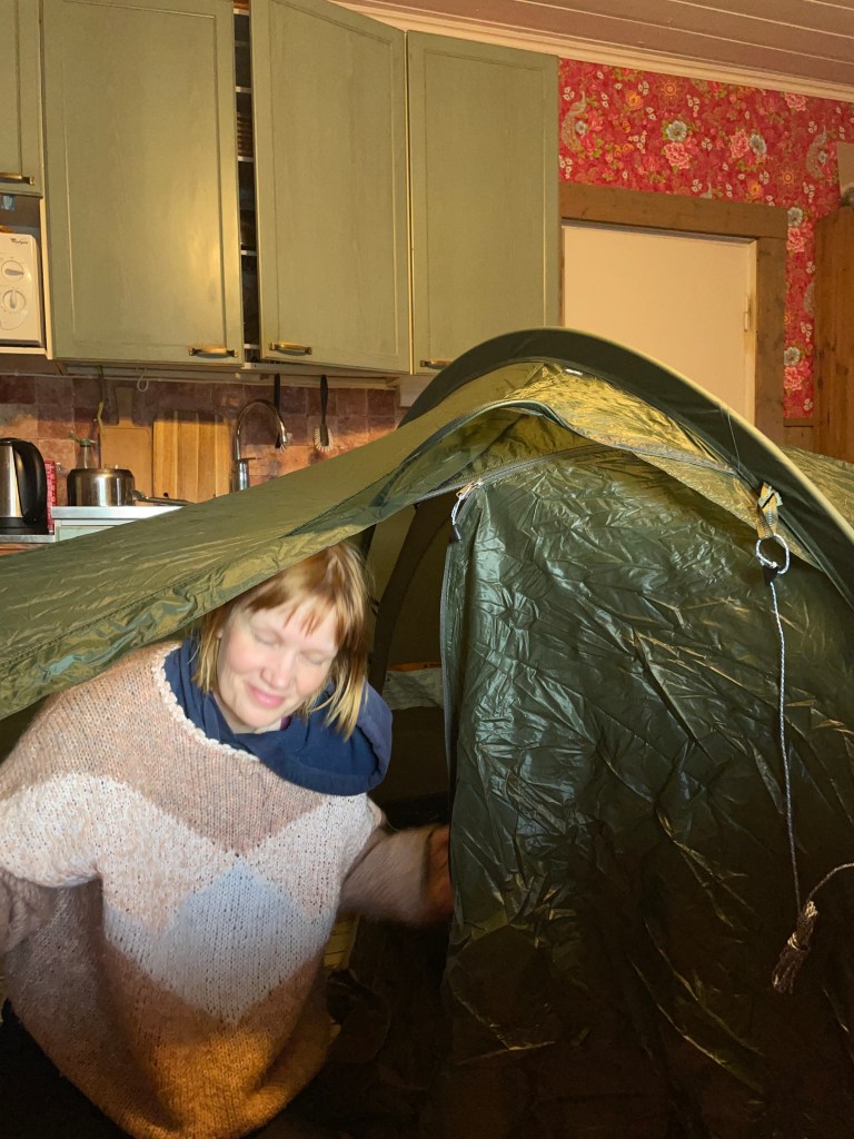 Hannukurusta Sioskuruun oli noin 12 kilometrin matka ja Sioskurusta Pyhäkerolle 8 kilometriä. Jälkimmäinen taival meni alamäen takia kuitenkin todella nopeasti ja olinkin yllättynyt, miten nopeasti Pyhäkeron tupa tuli vastaan. Täälläkin tuuli, mutta hieman eri tavalla. Hämmästelin hetken, että olin ainut ihminen tuvalla, mutta koska reissuun oli tultu telttailemaan, päätin myös jatkaa sillä linjalla. Pystytin innolla teltan tuvan taakse hieman tuulen suojaan. Iltavalmistelujen aikana paikalle pyyhälsi vaellusporukka, jotka olivat aloittaneet reissunsa Hetan päästä. Söin taas illallisen tuvassa seurustellen porukan kanssa reiteistä, varusteista ja suunnitelmista. Illalla telttaan kömpiessäni päätin pitää välipäivän. Halusin käydä Hetassa, jotta saisin kokea reitin kokonaisuudessaan, mutta ei ollut mitään järkeä raahata ahkiota mukana, mikäli tulisin samaan paikkaan takaisin ja aloittaisin paluumatkan.