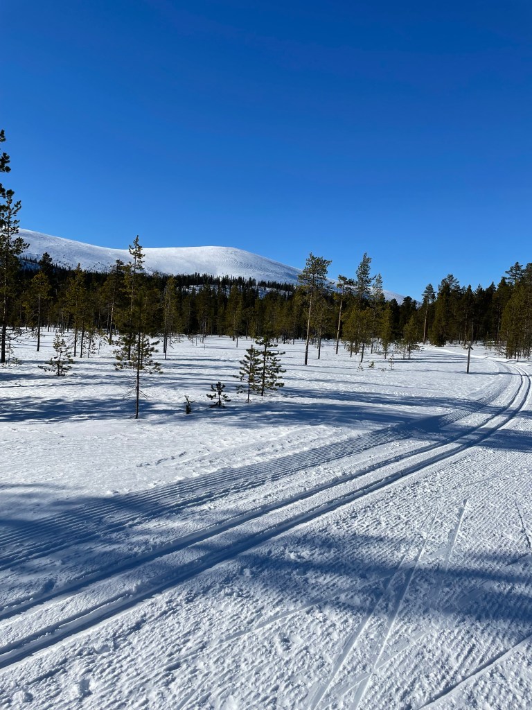 Lähdin hiihtelemään auringonpaisteessa ja suksi luisti mukavasti metsäisessä maastossa. Hettaan oli matkaa noin seitsemän kilometriä ja se sujahti nopeasti. Latuvaihtoehtoja oli paljon ja valitsin itäisen ladun, joka ajautuikin nimensä mukaisesti kolme kilometriä Hetan keskustasta itään. Tuulisen järven jään ylitettyäni saavuin Hetan päähän ja hiihtelin keskustaa kohden rannan myötäistä latua pitkin. Koska lunta riitti, hiihdin suoraan kaupan eteen ja mielitekona ostin munkkeja. Koska nälkä ei vielä ollut, päätin lähteä hiihtelemään takaisin ja syödä lounaan jossain kivassa paikassa matkan varrella. Lähdin seuraamaan Hetan keskustasta järven yli suoraan menevää latua ja tuuli tuiversi kylmästi. Koska kilometrit vilahtelivat taas vauhdikkaasti ohitse, hiihdinkin suoraan takaisin Pyhäkeron tuvalle. Vastaan tuli tuttuja vaeltajia, jotka olivat viimeistä päivää liikenteessä. Olin iloinen, että itse olin vasta puolessa välissä matkaani ja saisin nautiskella vielä monta päivää.