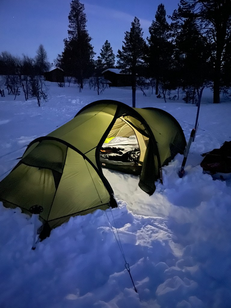 Noin 20 kilometrin hiihtelyn jälkeen saavuin taas Hannukurulle ja pystytin teltan suhteellisen samaan paikkaan kuin edellisellä kerralla. Tällä kertaa Hannukuru olikin hyvin hiljainen. Varaustuvassa oli neljän hengen porukka ja kävin kyselemässä heiltä saunakuvioista. Leirin pystyttämisen ja päivällisen jälkeen olikin odotetun saunan vuoro. Siellä heräsi mielenkiintoiset keskustelut Alpeilla toimivan oppaan kanssa ja juttelimme koko saunomisen ajan reiteistä, alan työkuvioista ja kaikenlaisista vaellushaaveista. Oli todella kivaa ja saunan jälkeen kömmin telttaan pää täynnä kaikenlaisia tulevaisuuden suunnitelmia.