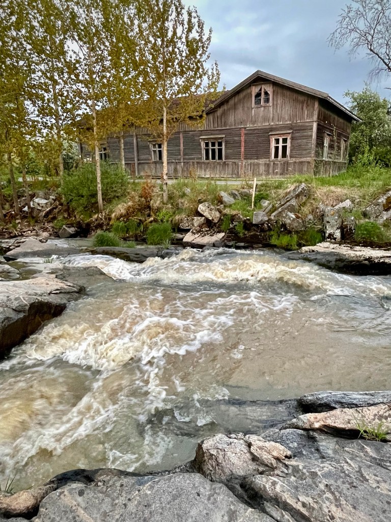 Toisen kosken jälkeen näin laiturilla miehen kylpytakissa. Pysähdyin juttelemaan, sillä hän oli seurannut koskenlaskuani. Hän kertoi, että koskia oli ennallistettu tuomalla niihin lisää kiviä, jotta ne imitoisivat vielä enemmän kalojen reittejä. Tämä oli hyvä muistutus itselle siitä, että vaikka ohjevihkonen melontareitistä tarjosi suosituksia koskenlaskulinjoihin, ovat kosket voineet ajan myötä muuttua. Ja tietenkin kaikki riippuu siitä, miten paljon vettä koskessa milläkin hetkellä on. Eli oma arviointi täytyy tehdä aina ensin.