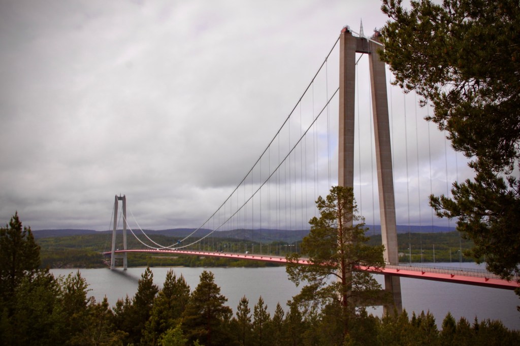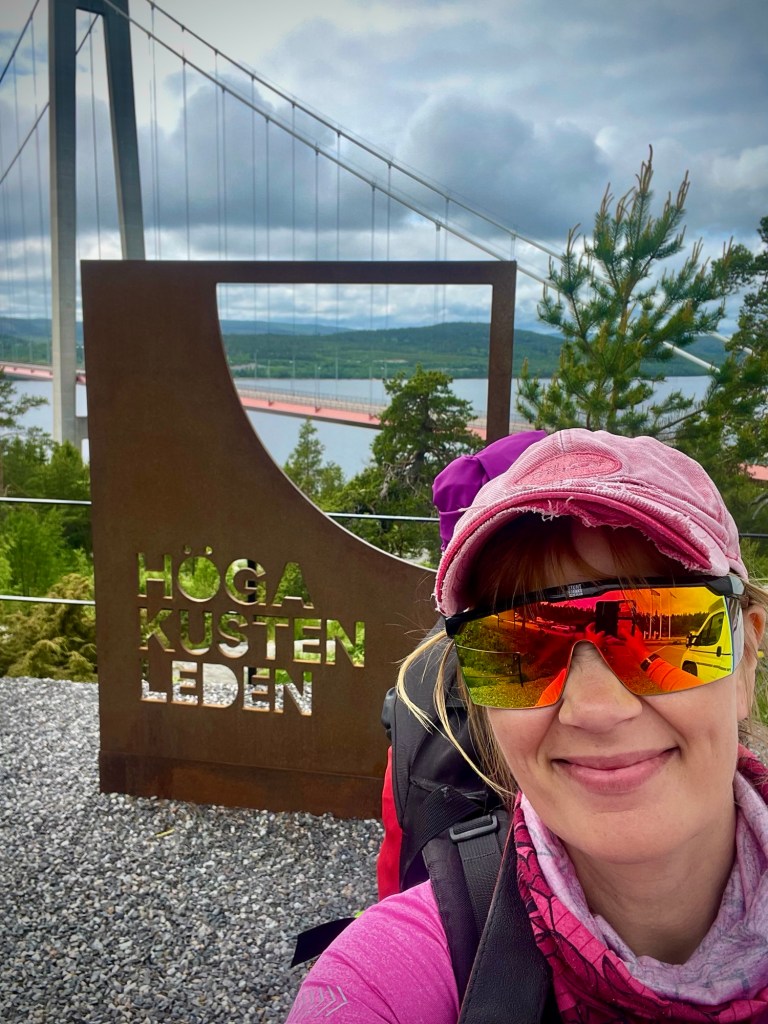 Viiden tunnin ajomatkan jälkeen ylitin kauniin Högakustenbron sillan, joka on yksi maailman suurimmista riippusilloista. Heti sillan oikealla puolella on näköalapaikka, hotelli, ravintola, turisti-info sekä tietenkin Höga Kustenledenin aloituspaikka. Napsin kuvia sillasta, kävin vessassa ja pistäydyin turisti-infossa, josta sain hyvää tietoa siitä, miten vaelluksen jälkeen pääsisin loppupisteestä takaisin aloituspisteeseen. Virallisessa oppaassa oli tieto, että parkkeeraus olisi ilmaista vaelluksen ajan. Se ei kuitenkaan pitänyt paikkaansa, vaan vain ensimmäiset 24 tuntia oli ilmaisia. Menin sen enempää ajattelematta maksamaan parkkiaikaa neljän yön edestä ja hinta oli mielestäni todella suolainen, noin 400 kruunua eli noin 40€, joka tekee 10€/vuorokausi. Oli kuitenkin päästävä matkaan, sillä päivä oli jo pitkällä, joten en alkanut tutkimaan sen enempää vaihtoehtoja auton parkkeeraukselle. Suosittelen kuitenkin etsimään etukäteen jonkun toisen parkkipaikan esimerkiksi vaelluksen lähtö- ja loppupisteiden ohittavan bussin reitiltä jonkun pysäkin läheisyydestä. Esimerkiksi joku sopiva pysäkki löytyy varmasti ennen isoa siltaa, josta voi ottaa bussin aloituspaikalle ja sitten vaelluksen jälkeen körötellä bussilla suoraan takaisin autolle.