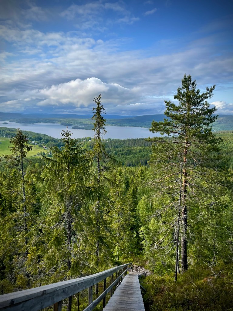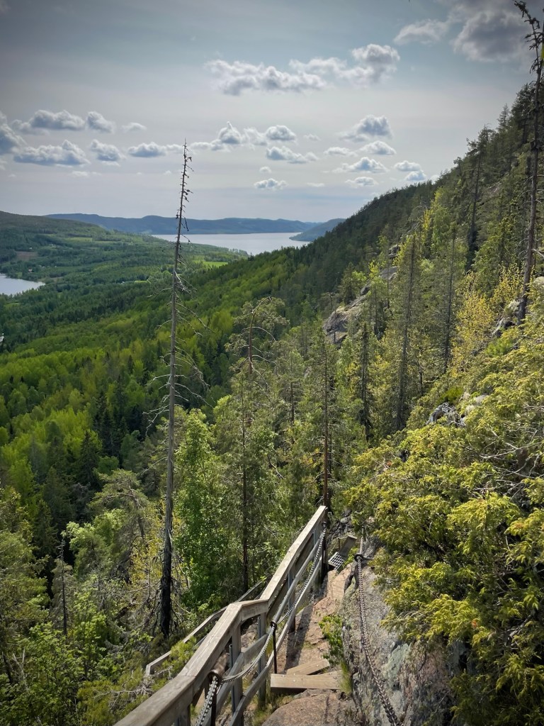 Kun tunsin nähneeni maisemia ja vuorenhuippua tarpeeksi, lähdin laskeutumaan loivempaa eteläistä polkua alas. Luolareittiä ei suositella mentäväksi alaspäin ja ymmärrän täysin kyllä miksi. Hyppelin kalliopolkua alas ja kadotin välillä reitin löytääkseni sen taas jostain kohtaa uudestaan. Saavuin takaisin luontotalolle, josta ostin hieman herkkuja mukaan ja lähdin jatkamaan matkaa. Seuraava tavoitteeni oli Skuleskogenin kansallispuisto.