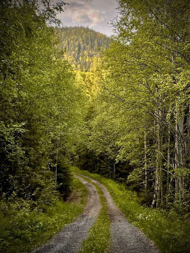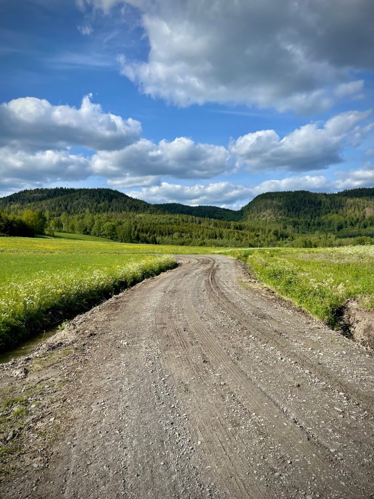 Puskien ja pikkuteiden kautta saavuin Gavikiin ja olin taas päivitetyllä reitillä. Gavikissa ei ollut mitään erityistä ja kävelin suoraan kylän läpi. Jonkun matkan päässä tuli viitta näköalapaikalle Älgabergetille, josta löytyisi myös laavu ja nuotiopaikka. Koska en ollut vielä majoittumassa ja kello kävi kovaa vauhtia, jätin sivupolun välistä ja jatkoin matkaa eteenpäin. Tie oli hiekkatietä ja päkiäni olivat aivan kammottavan kipeät. Tunsin jokaisen pikkukiven kenkieni läpi ja yritin valita tiestä linjoja, joissa kiviä olisi mahdollisimman vähän. Juoksijan polvi nihersi vasenta jalan reunaa ja eteneminen oli kaiken kaikkiaan todella epämukavaa. Olin varautunut kulkemaan alunperin tunturimaastossa ja olin jättänyt sauvani kotiin. Nyt tajusin niiden merkityksen, sillä aiemmat tämän vuotiset vaellukset olivat sujuneet niin hienosti ilman minkäänlaisia polvikipuja.