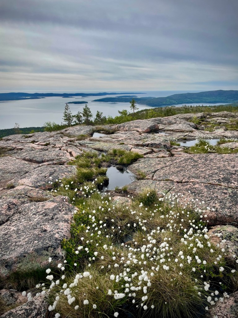 Reitti Skuleskogenissa oli vaikeakulkuista kivikkoa. Yksi puiston suurimmista nähtävyyksistä on mahtipontinen Slåttdalsskrevanin rotkokanjoni. Ennen sitä tein yhden poikkeaman reitiltä nähdäkseni maisemat Slåttdalsbergetin päältä ja voi juku, tämän takia olen elossa ja teen näitä reissuja. Kallioiden päältä avautui niin upeat maisemat Ruotsin saaristoon ja se rauha ja hiljaisuus, mikä huipulla oli, oli todella erityistä. Tupasvillat huojuivat tuulessa ja istuin pitkän aikaa vain huokaillen ja ihastellen maisemia sekä luvaten samalla itselleni, että tänne haluan palata ja nimenomaan ajan kanssa ilman näin tiukkoja aikatauluja. Lähdin vastahakoisesti laskeutumaan alas takaisin kuolevaisten maailmaan, mutta onneksi heti edessä oli rotkokanjoni, joka herätti myös ihailua. Reitti on ennen kulkenut kanjonin läpi, mutta uskon, että se on suljettu turvallisuussyistä samaan tapaan kuin Helvetinkolu Helvetinjärven kansallispuistossa. Uusi reitti vei rotkon ympäri ja oli aika vaikeakulkuinen, mutta sieltäkin oli hienot näkymät.