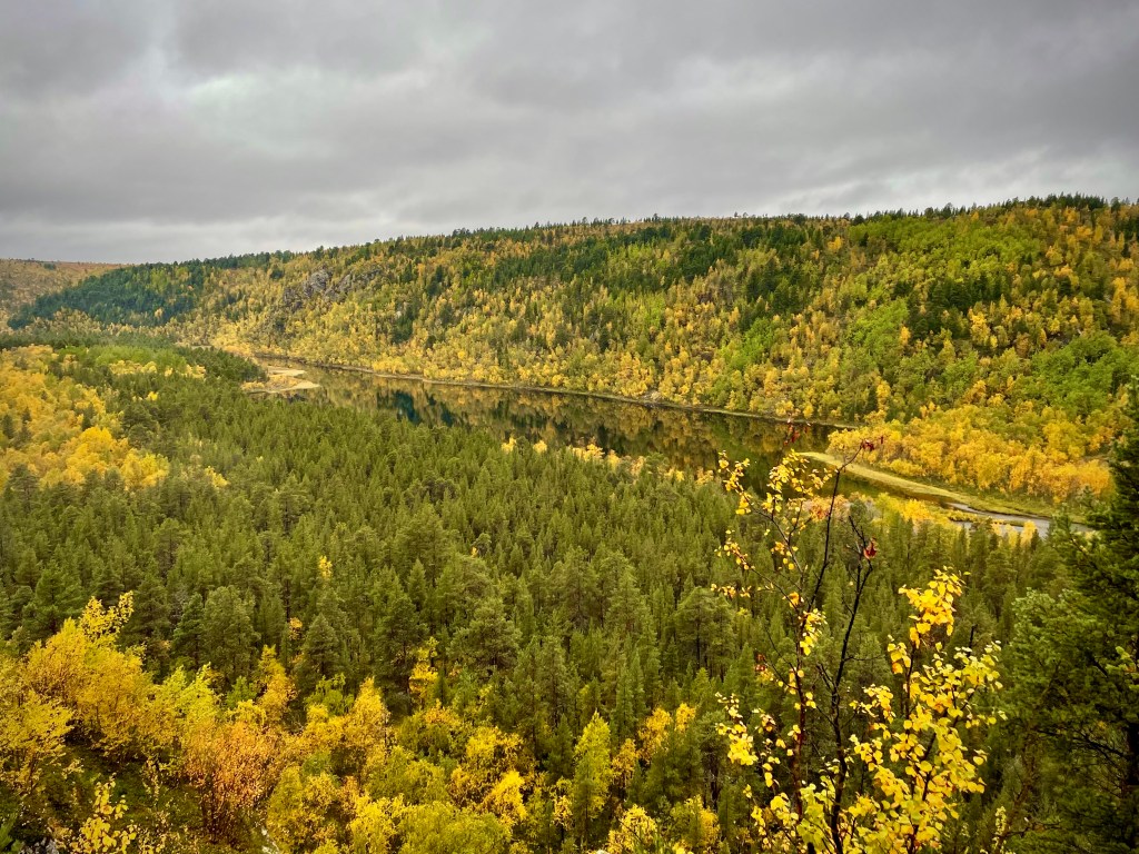 Reitti saapui metsästä soisemmalle alueelle ja kulki isohkojen järvien välistä. Kävelimme Silkeájan leiripaikan ohi ja lounaan söimme metsäisellä Guoikgáhritájalla. Jos olisimme tienneet, mitkä maisemat odottavat aivan nurkan takana, olisimme ehdottomasti säästäneet lounaamme ja nauttineet ne hetkeä myöhemmin avautuvissa näkymissä.