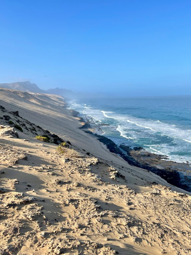 Fuerteventura on maastoltaan melko samanlainen kuin Lanzarote: karua, kuivaa ja erityisen tuulista. Fuerteventura tarkoittaakin kovaa tuulta ja tämän sain kyllä huomata vaellukseni aikana moneen kertaan. Pinnanmuodot ovat maltillisia, vuoria on jonkun verran, mutta ne ovat kaikki alle kilometrin korkuisia. Reitti kulkee loppuosassa rannikkoa pitkin pysytellen muuten pitkälti saaren sisäosissa.