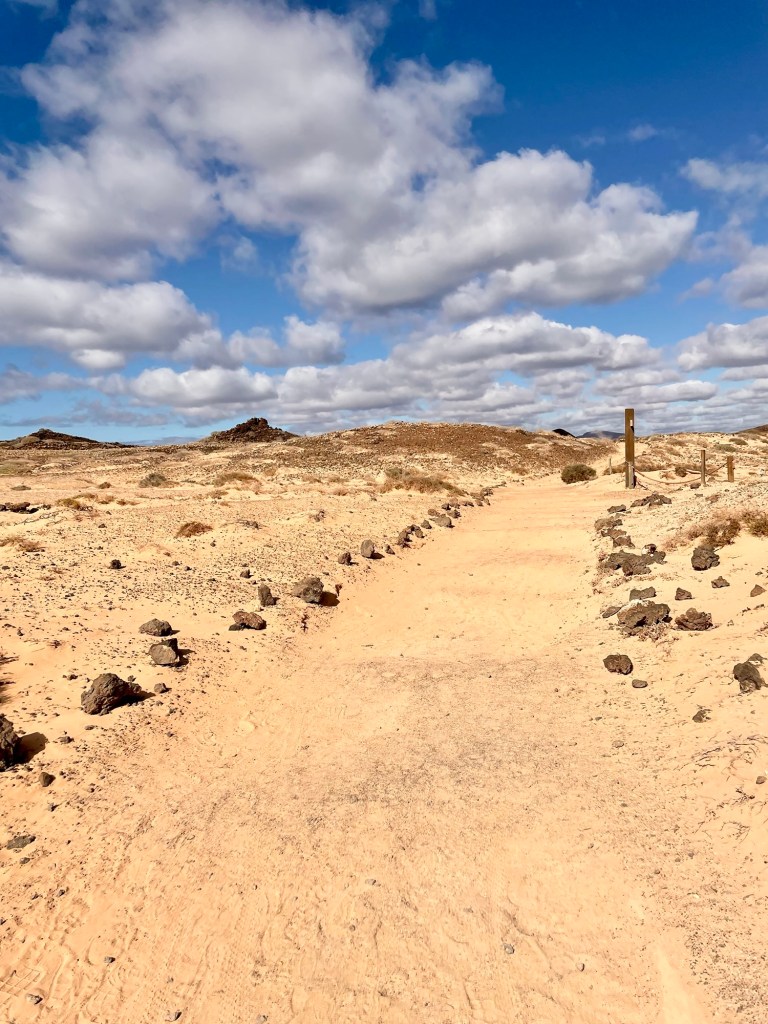 En osannut arvioida, kuinka kauan minulla kestäisi kiertää saari, joten astelin ripeästi suosittujen poukamien ohi ja jatkoin hiekkaista tietä saaren sisäosia kohti. Olin erittäin hyvällä tuulella ja iloinen siitä, että sain Lobosilla vierailun onnistumaan heti Fuerteventuralle saapumisen jälkeen.