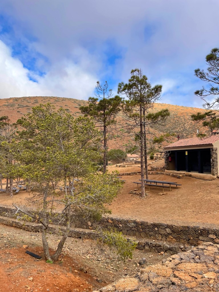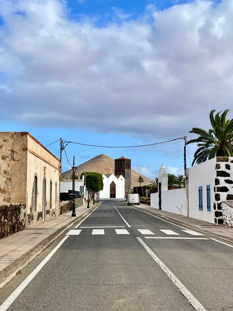 Aamulla vaelluskaverini halusi lähteä aikaisin liikkeelle ja huikkasimme toisillemme hyvät matkanjatkot. Laitoin oman leirini kasaan, palasin reitille ja kokkailin siellä itselleni aamupalaa. Reitti kiersi pyhän Tindaya-vuoren ja saavuin muutaman kilometrin kuljettuani samannimiseen kylään. Tapasin vaelluskaverini vielä kertaalleen juuri avautuneessa baarissa. Hänen jatkaessa matkaansa jäin itse vielä nauttimaan juomia ja latailemaan puhelinta. Sen jälkeen kävin pienessä kaupassa hakemassa täydennyksiä ja lähdin käpyttelemään kylästä poispäin.