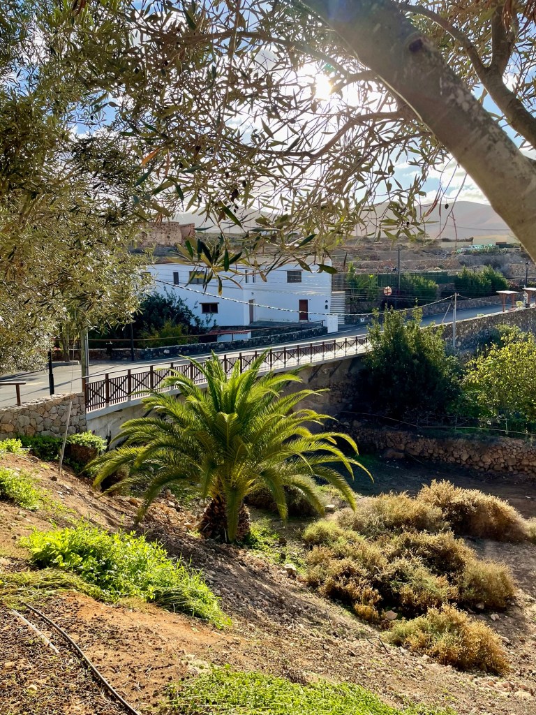 Tulivuoren jälkeen reitti vei kohti Lajaresin kylää, joka oli vilkas surffikylä. Vaelluskaverini halusi käydä ostamassa kaasua ja minä jäin sillä aikaa syömään lounasta puiden katveessa olevalle penkille. Kävimme vielä kaupassa hakemassa täydennyksiä ja matka jatkui kohti La Olivaa. Reitti muuttui mielenkiintoisemmaksi siirryttyään pois teiltä ja halusin jäädä kuvailemaan maisemia. Nuori herra meni hyvän matkaa edellä ja sain edetä omaa tahtiani. Lähellä La Olivaa sain hänet kiinni ja etsimme baarin, josta ostimme syötävää ja juotavaa ja samalla sain puhelintani ladattua. Oli hassua, että jouluvalmistelut olivat alkaneet kaikkialla. Jotenkin kesäinen sää oli niin kaukana siitä joulusta, johon itse on tottunut.