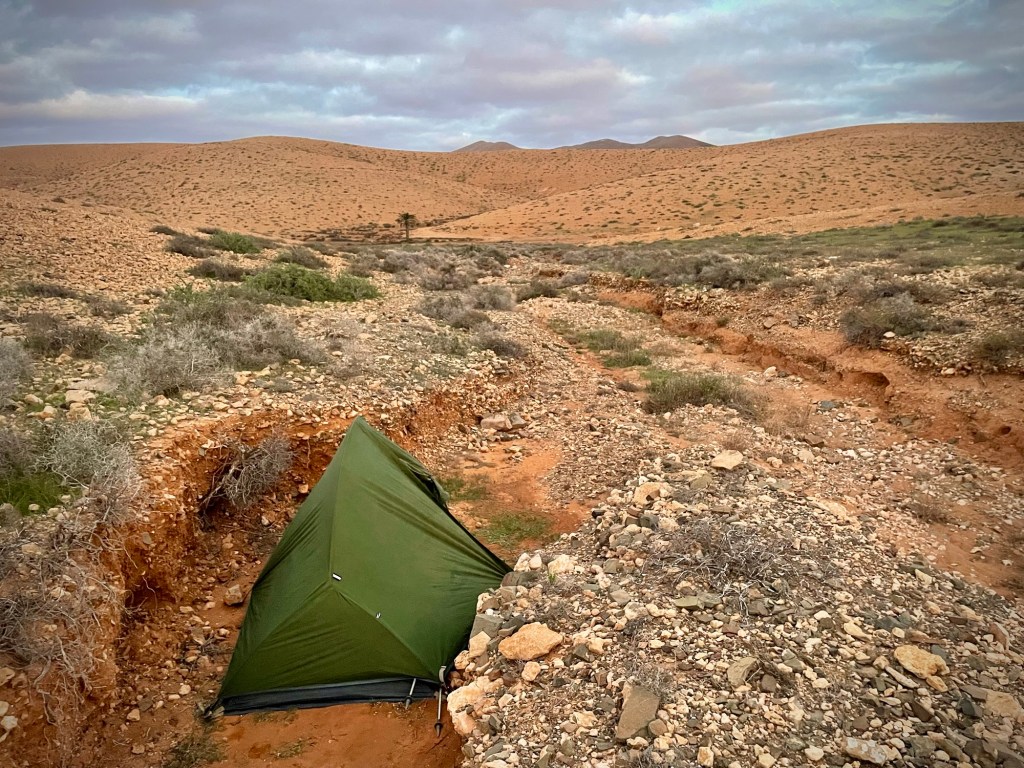 Päivä oli ollut pitkä ja jalat olivat väsyneet. Muutaman kilometrin Morro Jablen ulkopuolelle käveltyäni päätin yksinkertaisesti, että nyt riittää tältä päivältä ja löysin taas sopivan leiripaikan kuivasta joenuomasta. Olin uoman suojassa ja laitoin teltan pystyyn jo ennen pimeän tuloa. Täyttelin ristikoita ja kirjoittelin muistiinpanoja fiiliksistäni tätä reissua ja koko vuotta summaten. Tämä olisi viimeinen yö 12 vaellusta vuodessa -haastettani ja minut täytti valtava kiitollisuuden tunne. Tunsin samalla itseni myös aivan karmean likaiseksi ja haaveilin jo seuraavasta hotelliyöstä suihkuineen.