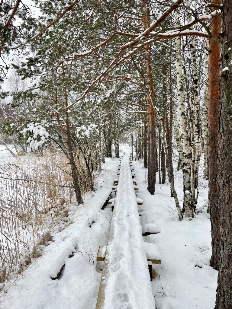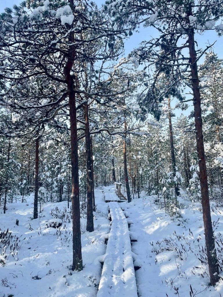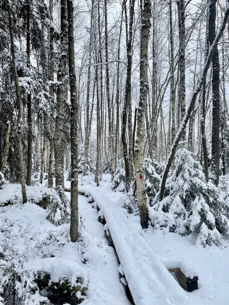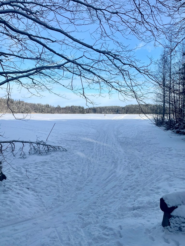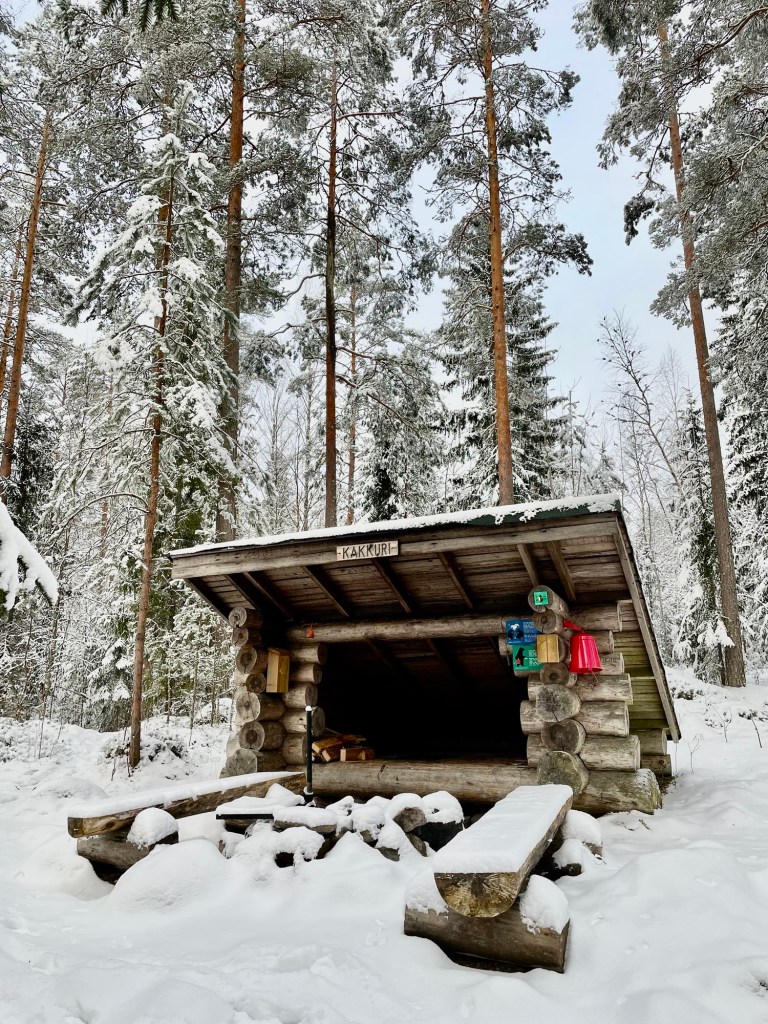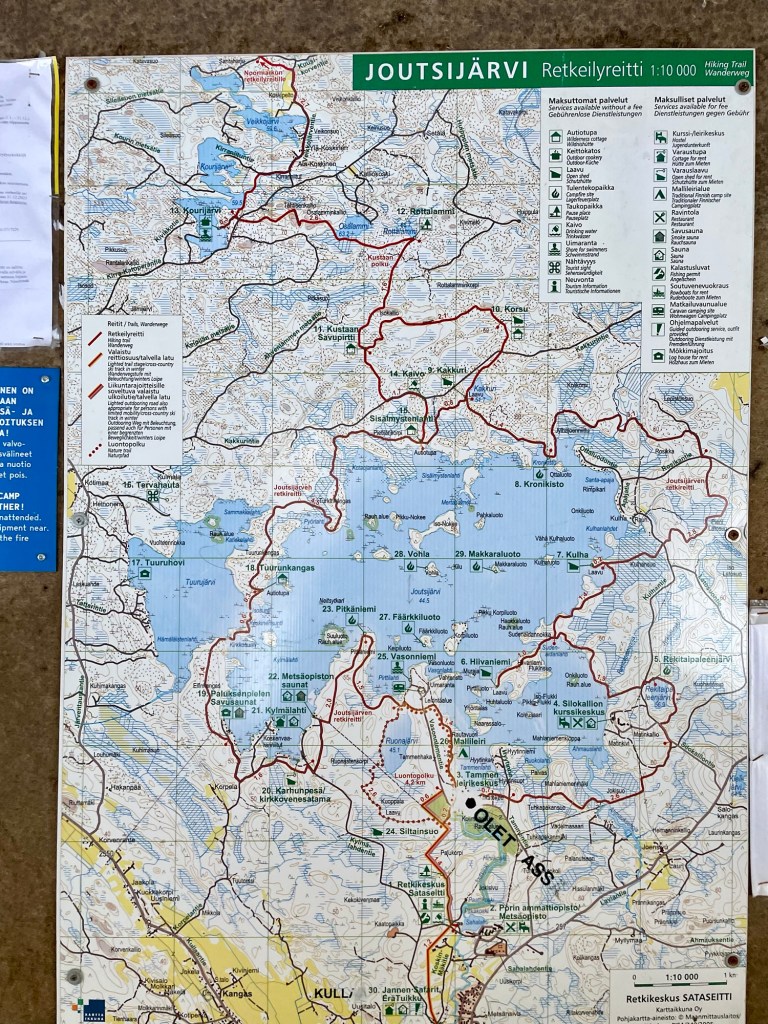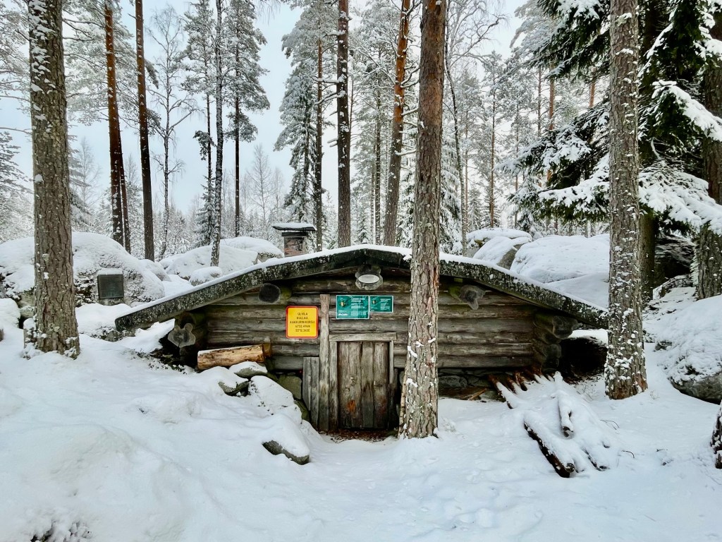 Tykkäsin tästä reitistä todella paljon. Reitti oli hyvin merkitty, ylläpidetty ja tuvat toivat siihen erämaista tunnelmaa. Taukopaikkoja oli paljon ja täällä tosiaan pystyy liikkumaan paikasta toiseen joko perinteisesti patikoiden tai sitten järveä pitkin hiihtäen tai meloen. Voin kuvitella, että kesäaikaan täällä voi olla aika paljonkin retkeilijöitä, mutta näin talvella ja arkena sai kulkea täysin rauhassa. Alueella on myös majoituspalveluita, joten jokainen voi leipoa vierailustaan juuri itselleen sopivan.