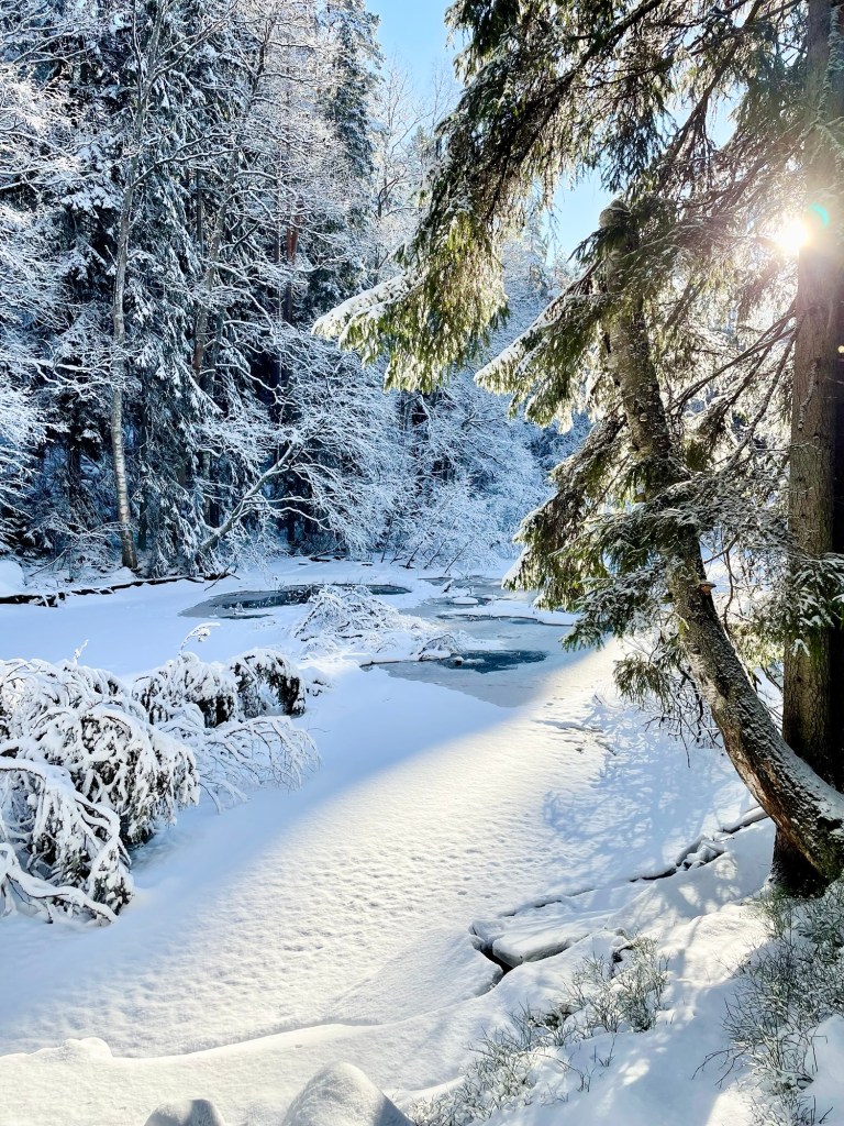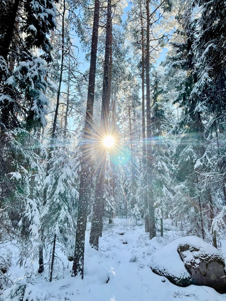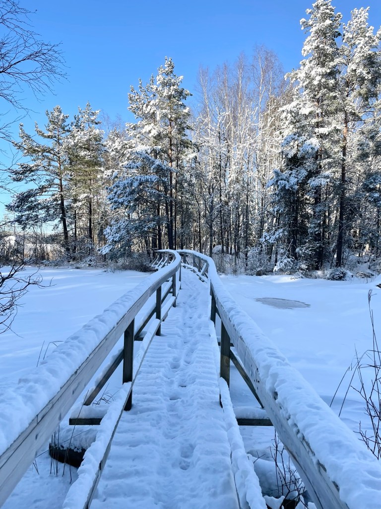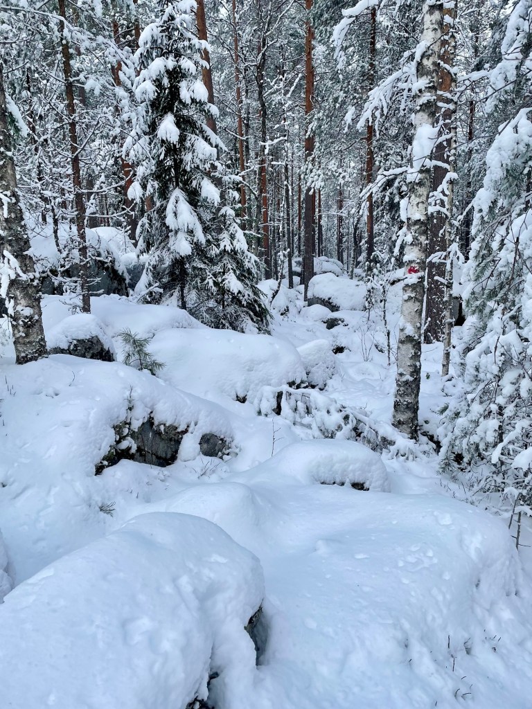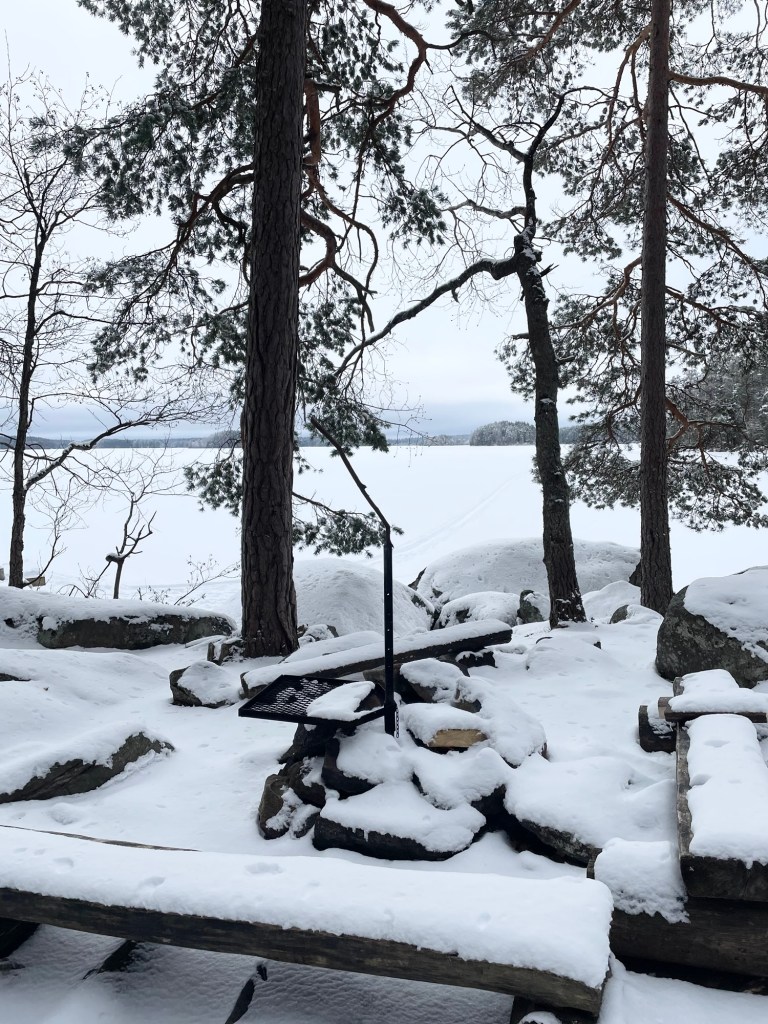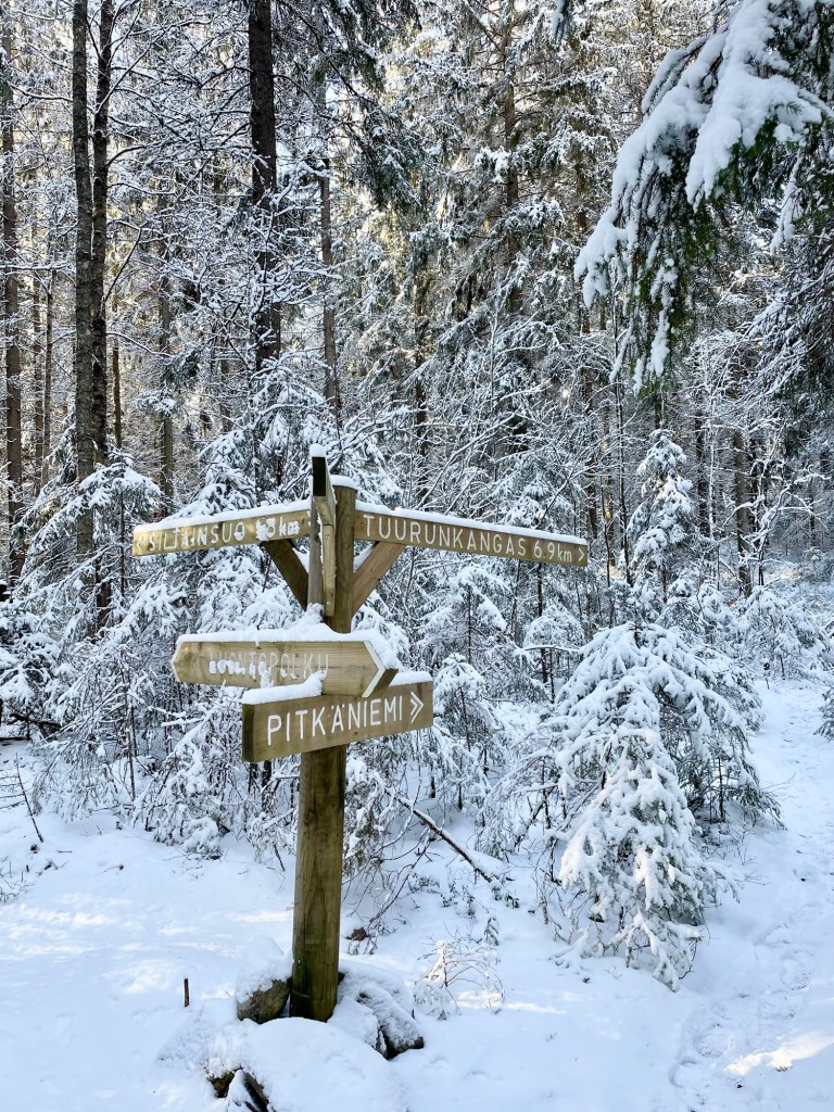 Helmikuinen eteläsuomalainen talvi oli harvinaisen armelias säineen, eikä minun tarvinnut liukastella poluilla tai rämpiä vesisateessa. Aurinko paistoi kahtena päivänä ja puhdas luminen luonto oli niin kaunis, mitä se tähän vuodenaikaan voi ylipäätänsä olla. Tänne toivon tulevani joskus vielä uudestaan esimerkiksi kajakin kanssa tai polkujuoksun merkeissä. Vinkkasin jo kaverilleni, että käydään joskus kesäaikaan juoksemassa reitti ympäri ja varataan sen perään majoitus saunalla.