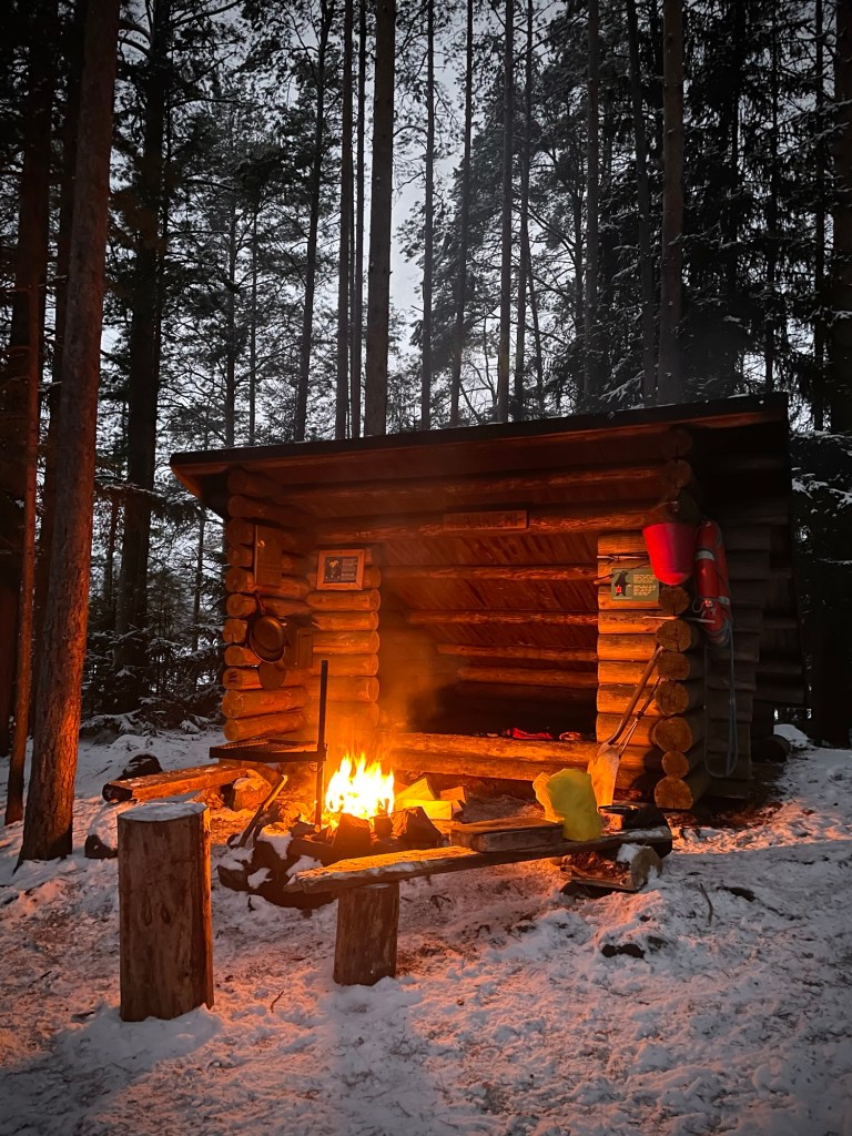 Sytytin tulet nuotiopaikalle ja laitoin laavulle makuukamppeet valmiiksi. Sulattelin lumesta vesiä itselleni ja söin närppien sitä sun tätä. Ei ollut oikein nälkä. Pieni metsämyyrä vilahteli laavulla ja keräsin ruuat pois näkyviltä. Olin laittanut makuupusseihini kuumavesipullot ja kaikki vaatteet päälleni, mitä minulla oli mukana. Yöllä en varsinaisesti palellut, mutta vilunväreet kulkivat kehossani ja tukkoisen nenän takia oli pakko hengittää suu auki ja maata vain selällään. Pakkasta oli noin kymmenen astetta ja se kuivatti kitalaen ja sadattelin mielessäni tulevaa huonosti nukuttua yötä.